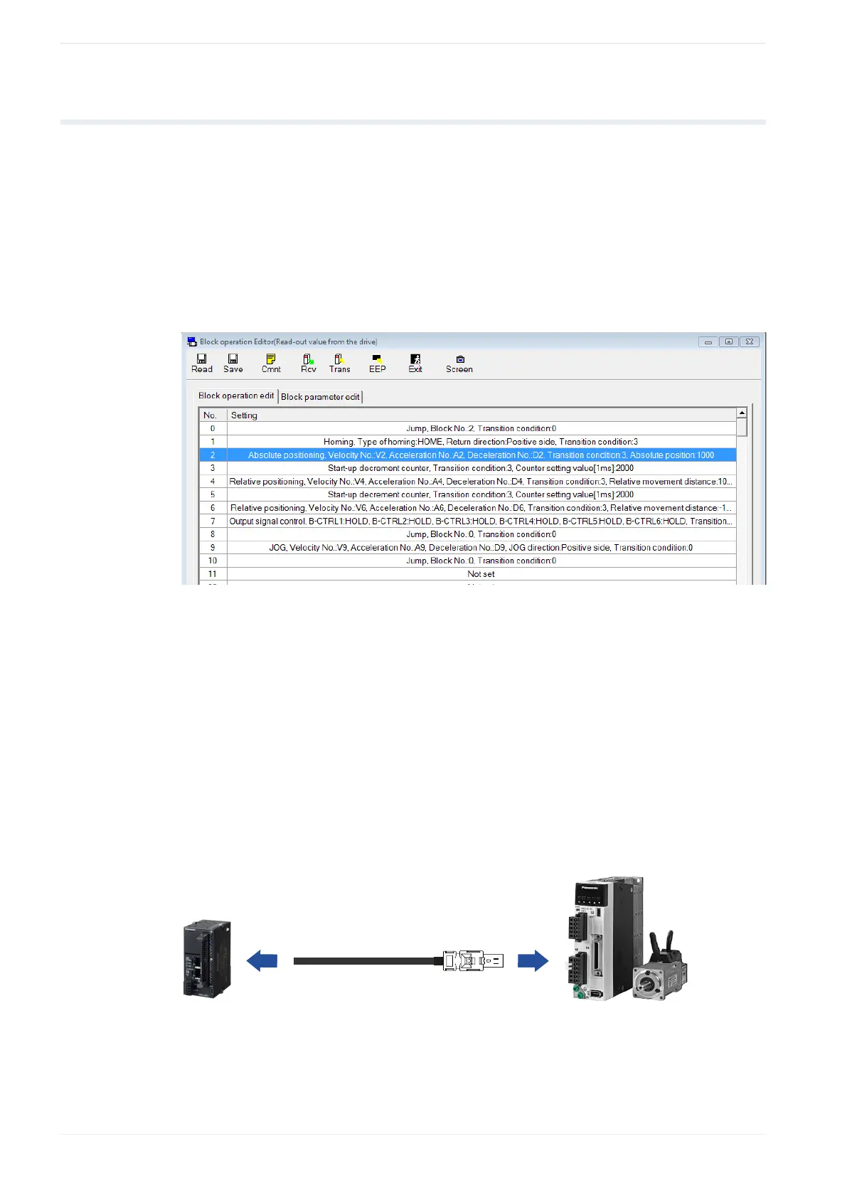 are saved in a block operation table in the servo driver.