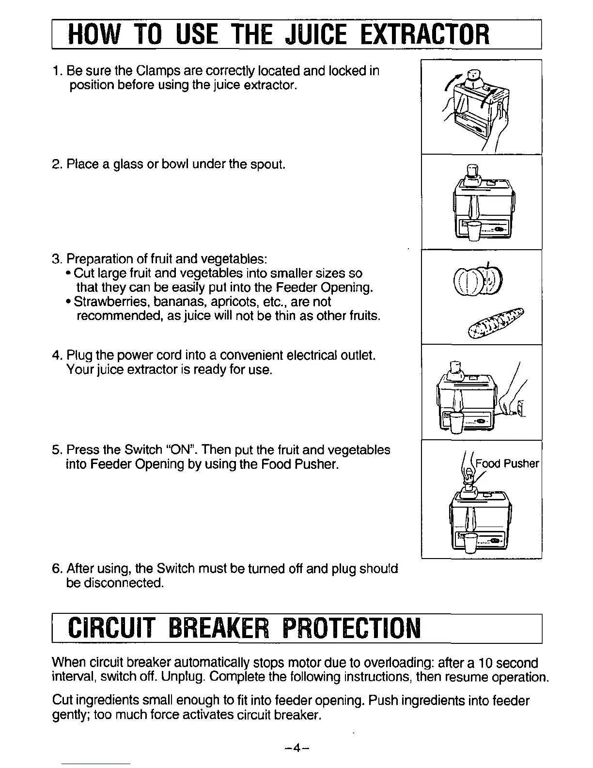 Panasonic MJ-66PR - How to Use the Juice Extractor; Circuit Breaker Protection