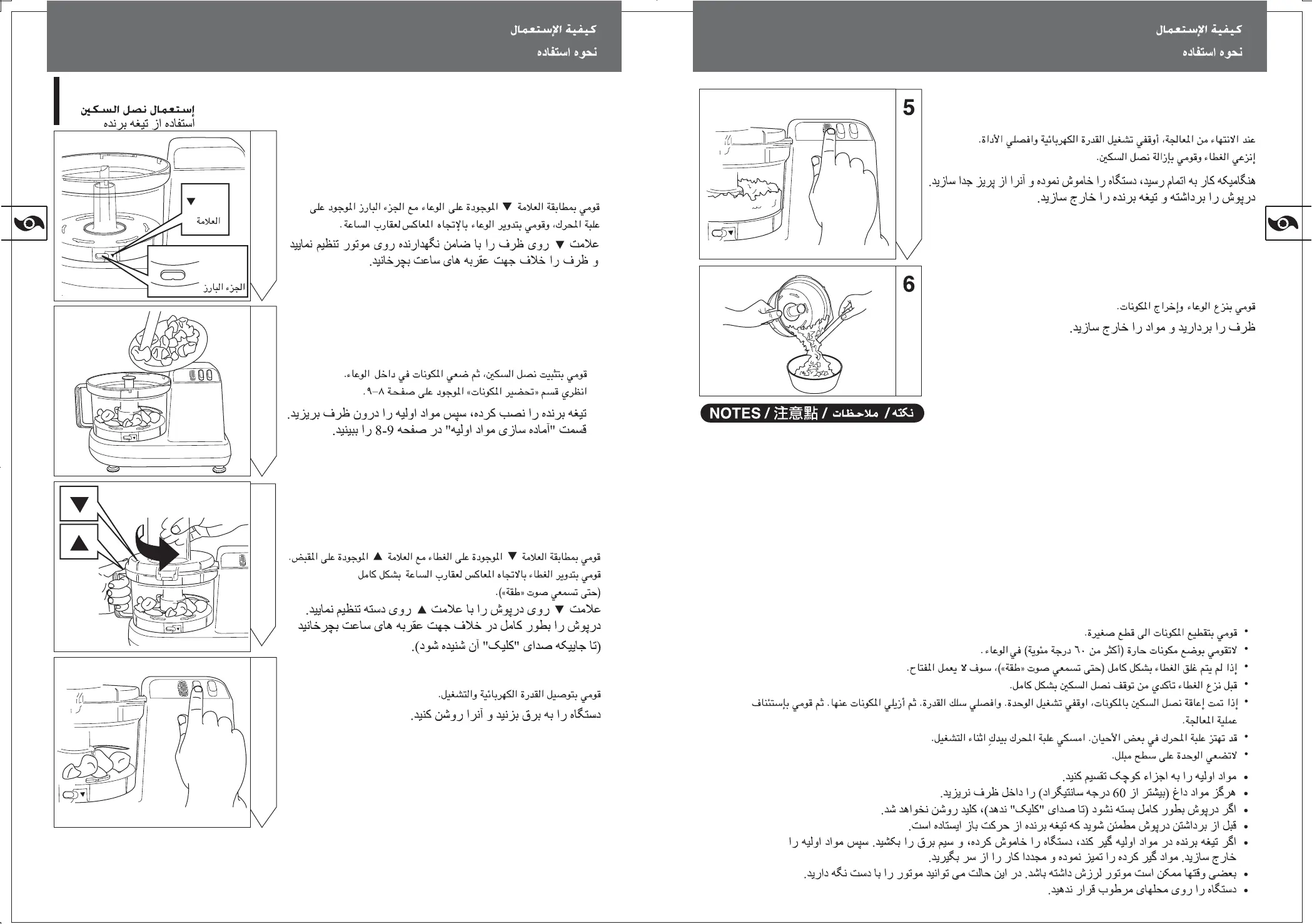 •葉刀片轉動食品材料塊堵塞時,關閉本機,關閉電源然後將電源插頭拔出。取出阻礙的材料塊然後再繼續之。