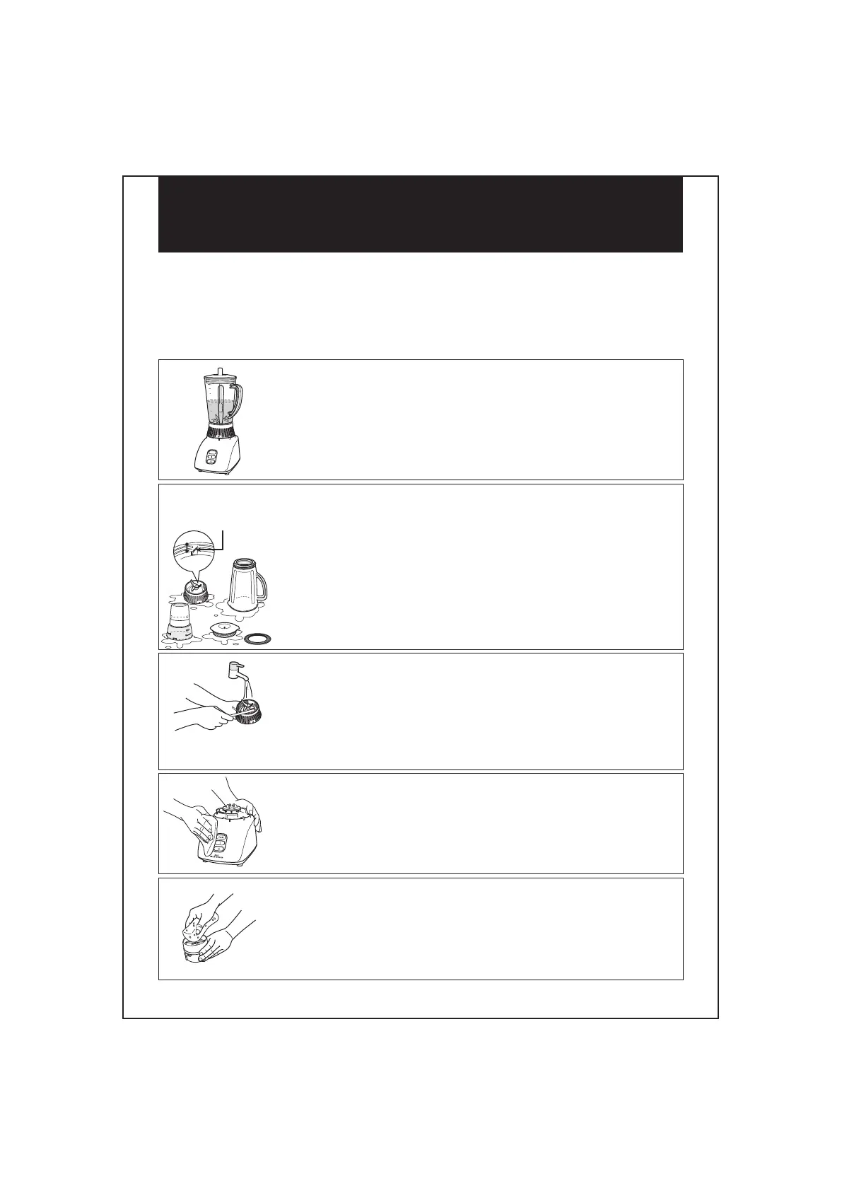 使用加有清洗濟的水及刷子來清洗整個容器,蓋子,環墊和碾磨機容器。然後仔細沖洗及抹乾。
