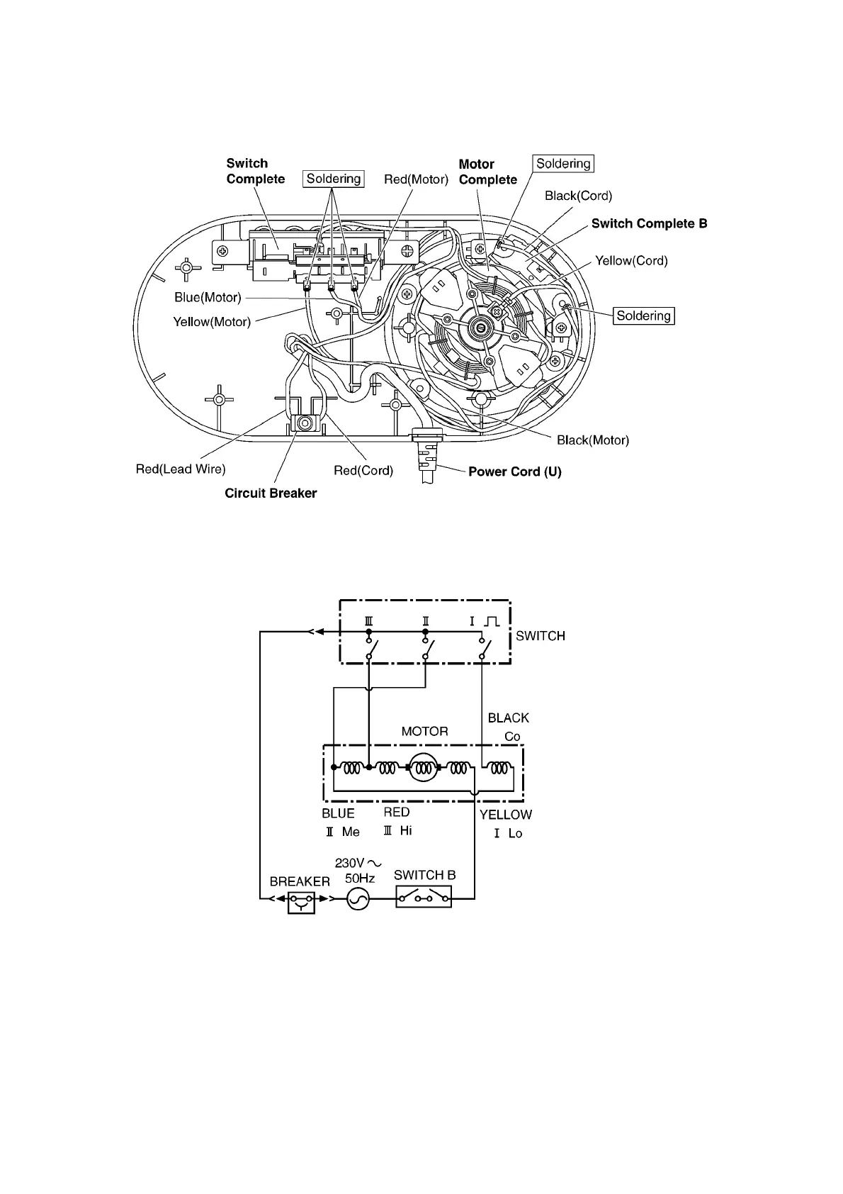 is connected with medium speed switch terminal, red wire is connected with maximum speed switch terminal. Motor