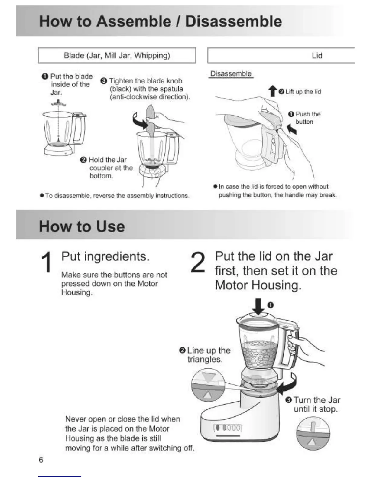 Panasonic MX-AC210 - Assembly and Disassembly; Operating the Mixer Grinder
