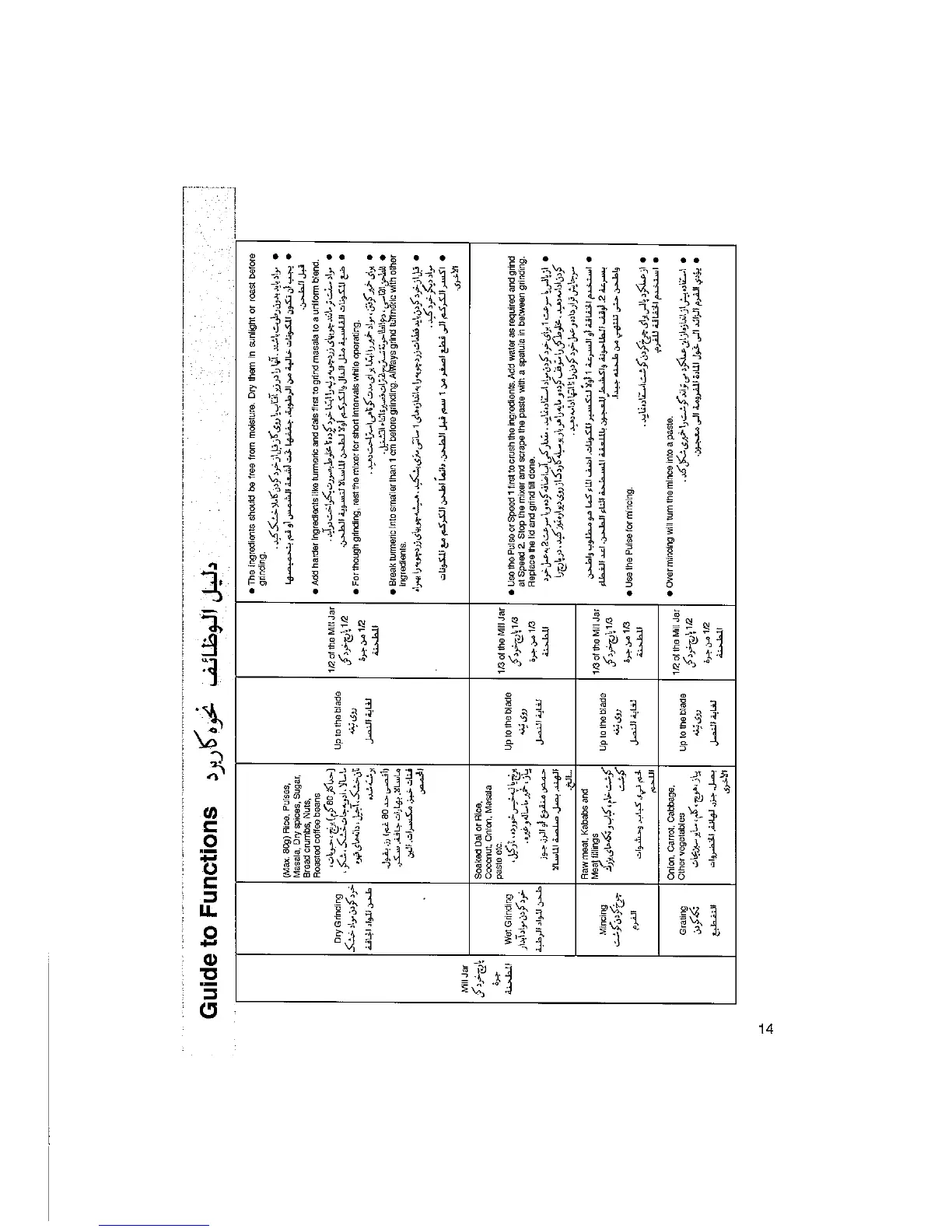 Panasonic MX-AC300 - Guide to Functions - Grinding; Dry Grinding; Wet Grinding; Mincing and Grating