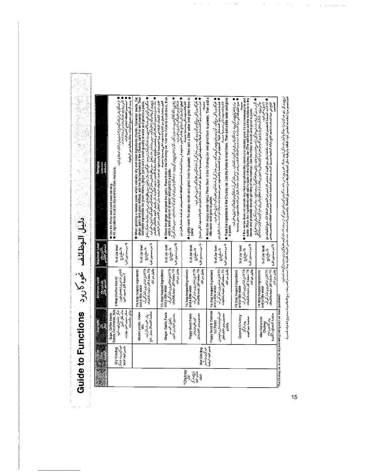 Panasonic MX-AC300 - Guide to Functions - Pastes and Chutneys; Masala Paste Preparation; Ginger, Garlic, and Poppy Seed Pastes; Chutney Preparation