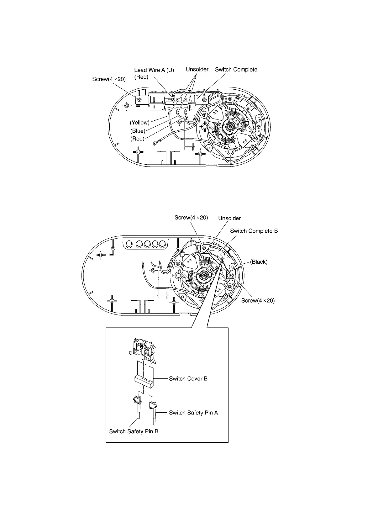 2. Melt the solder and detach the Lead Wire Yellow, Blue,