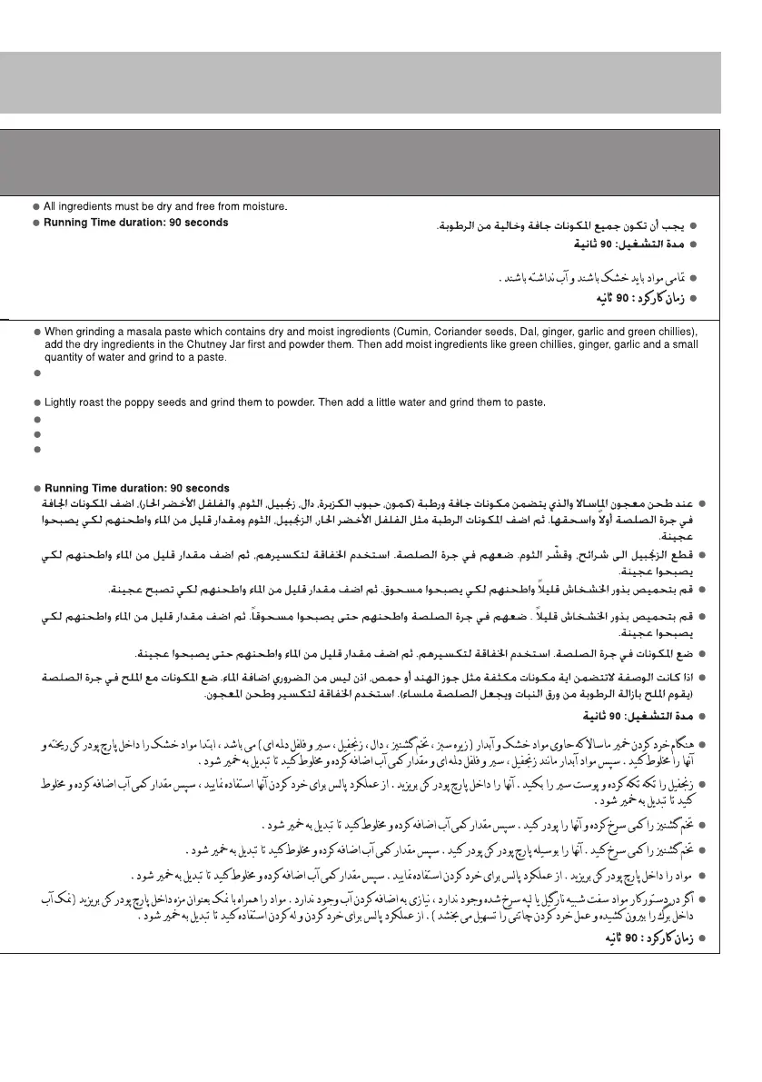 *The Multi Jar is used for dry and wet grinding such as small quantities of masala powders, pastes and chutneys. When grinding very small quantities,