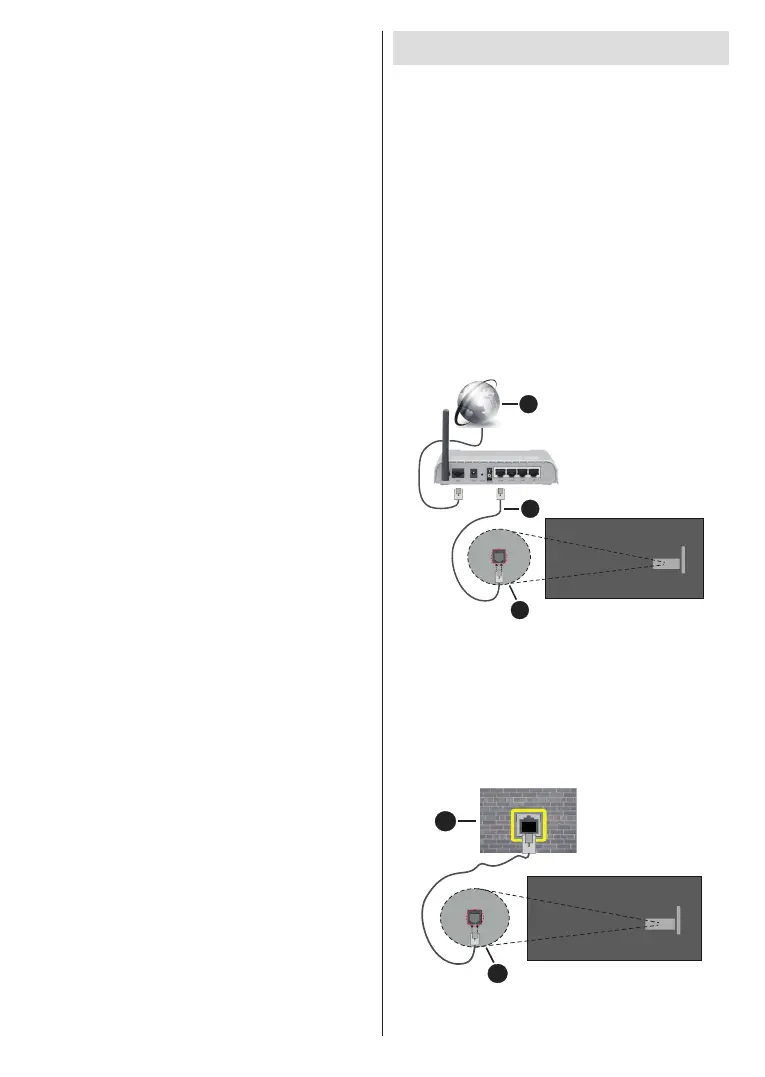 über ein Ethernet Kabel. Auf der Rückseite Ihres TV