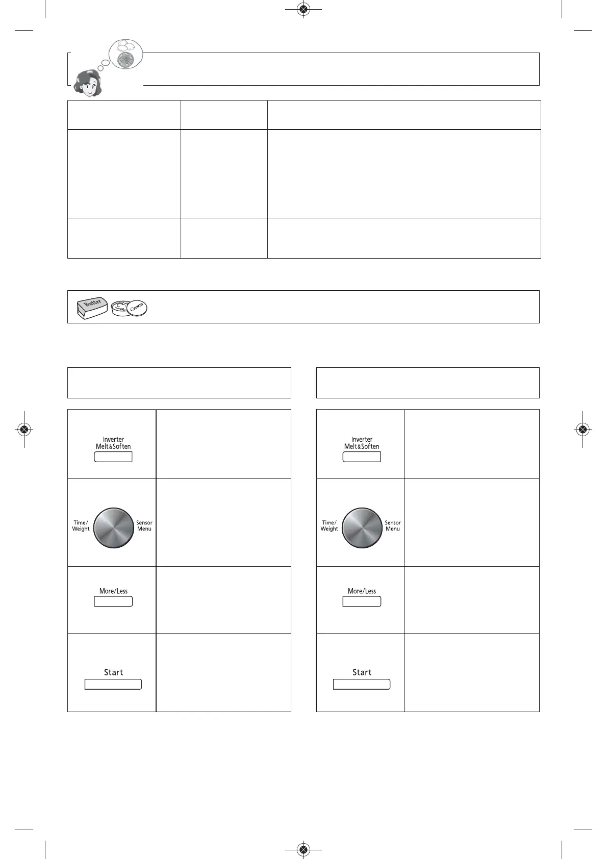 This feature allows you to melt or soften food listed in the chart on page 23.