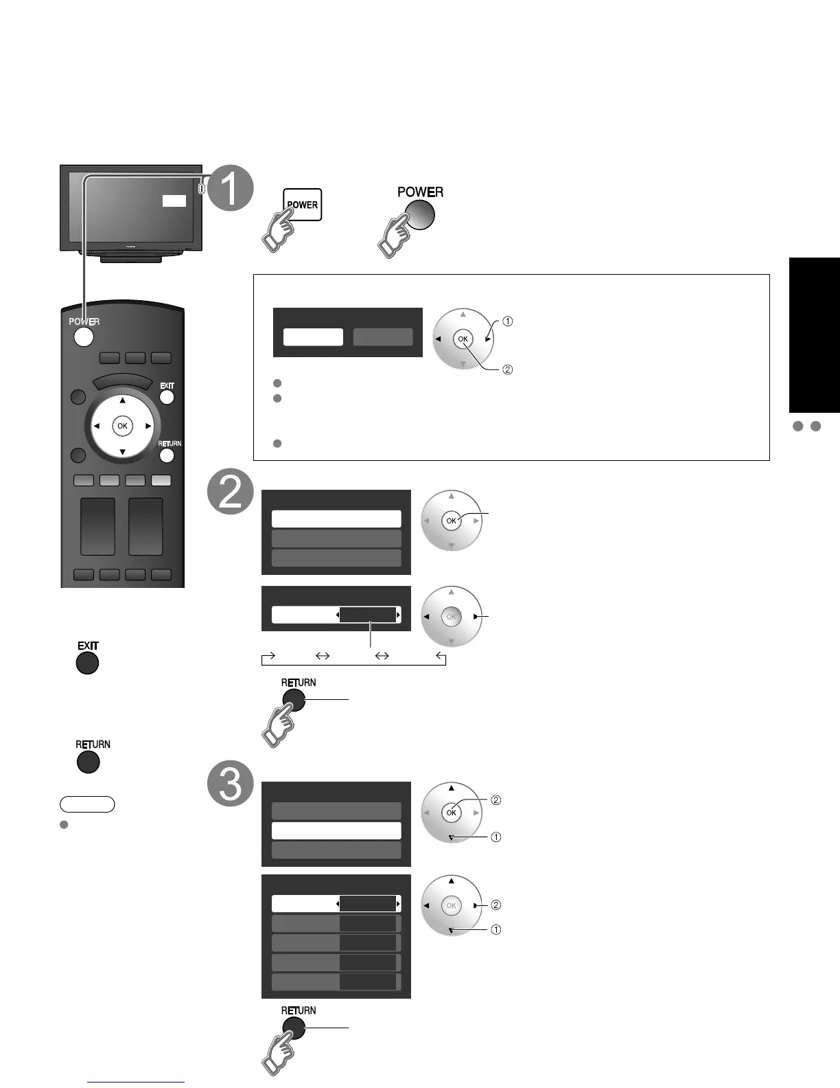 “First time setup” is displayed only when the TV is turned on for the first time after the power cord is