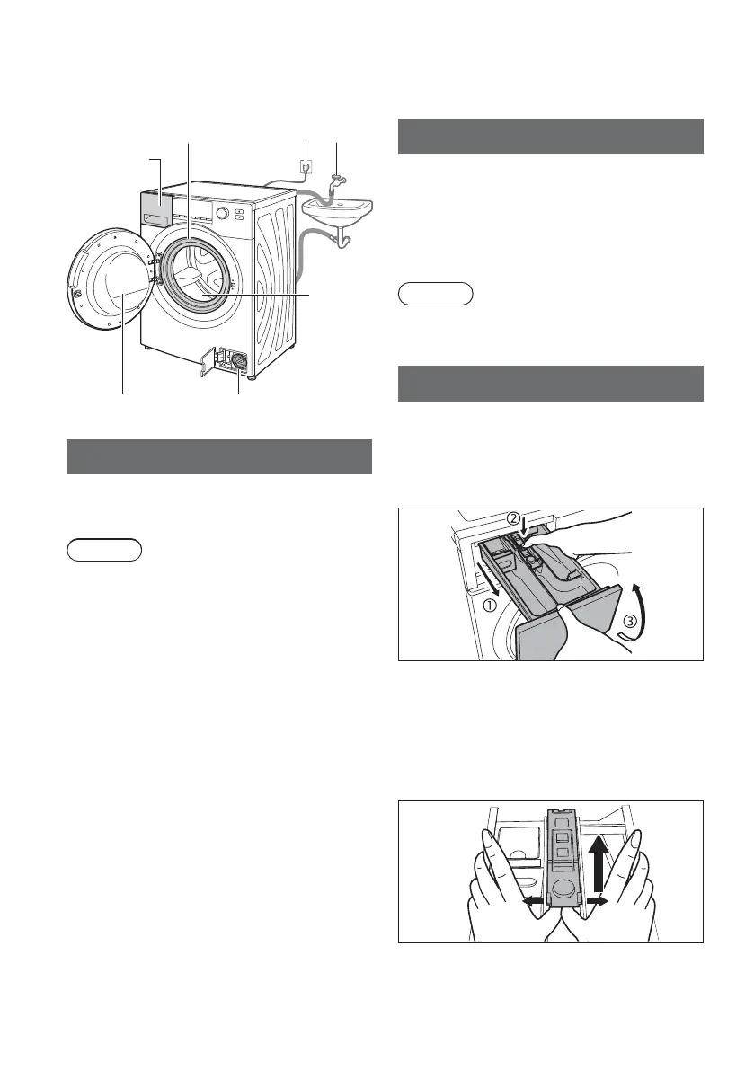1 Pull out the detergent drawer.