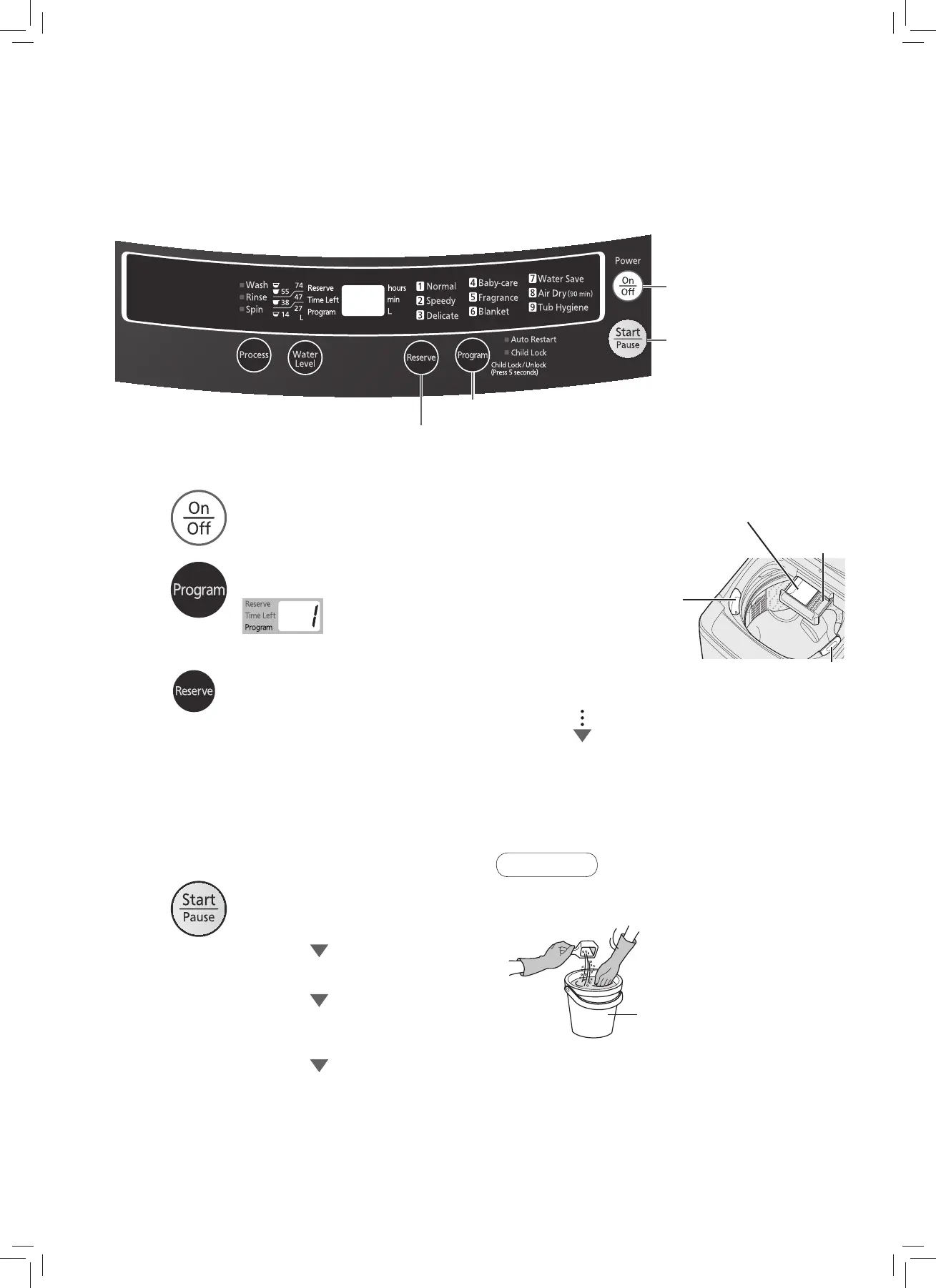 Preparation: ● Check whether the washing machine has been properly installed. (P. 12)
