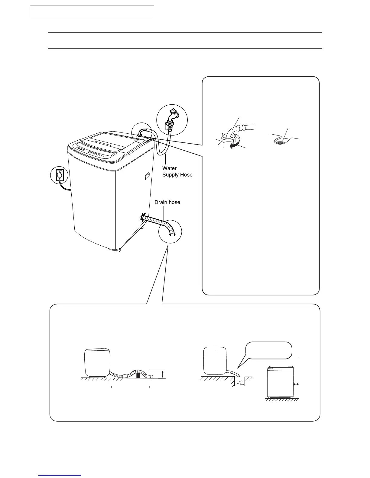 If extended external part is necessary when connecting the drain hose, the length of the drain hose should be