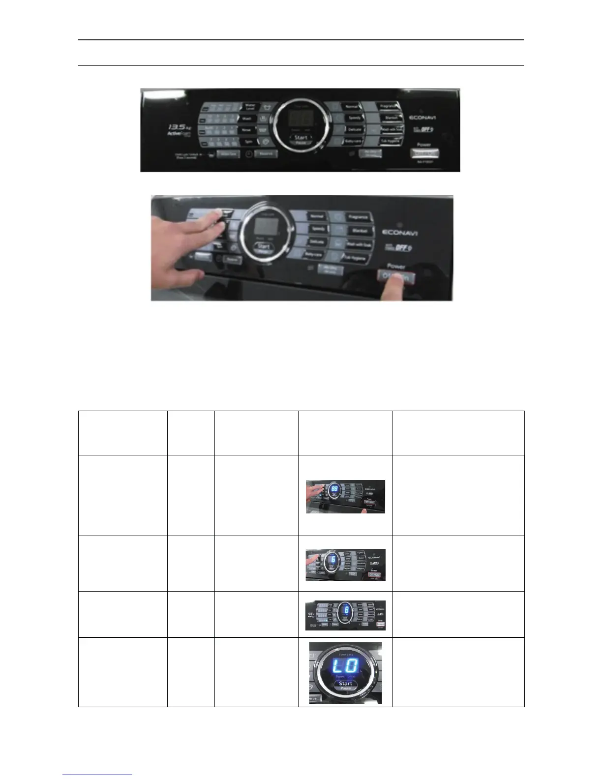 - Press and hold both the "Water level" and "Wash" buttons with one hand.