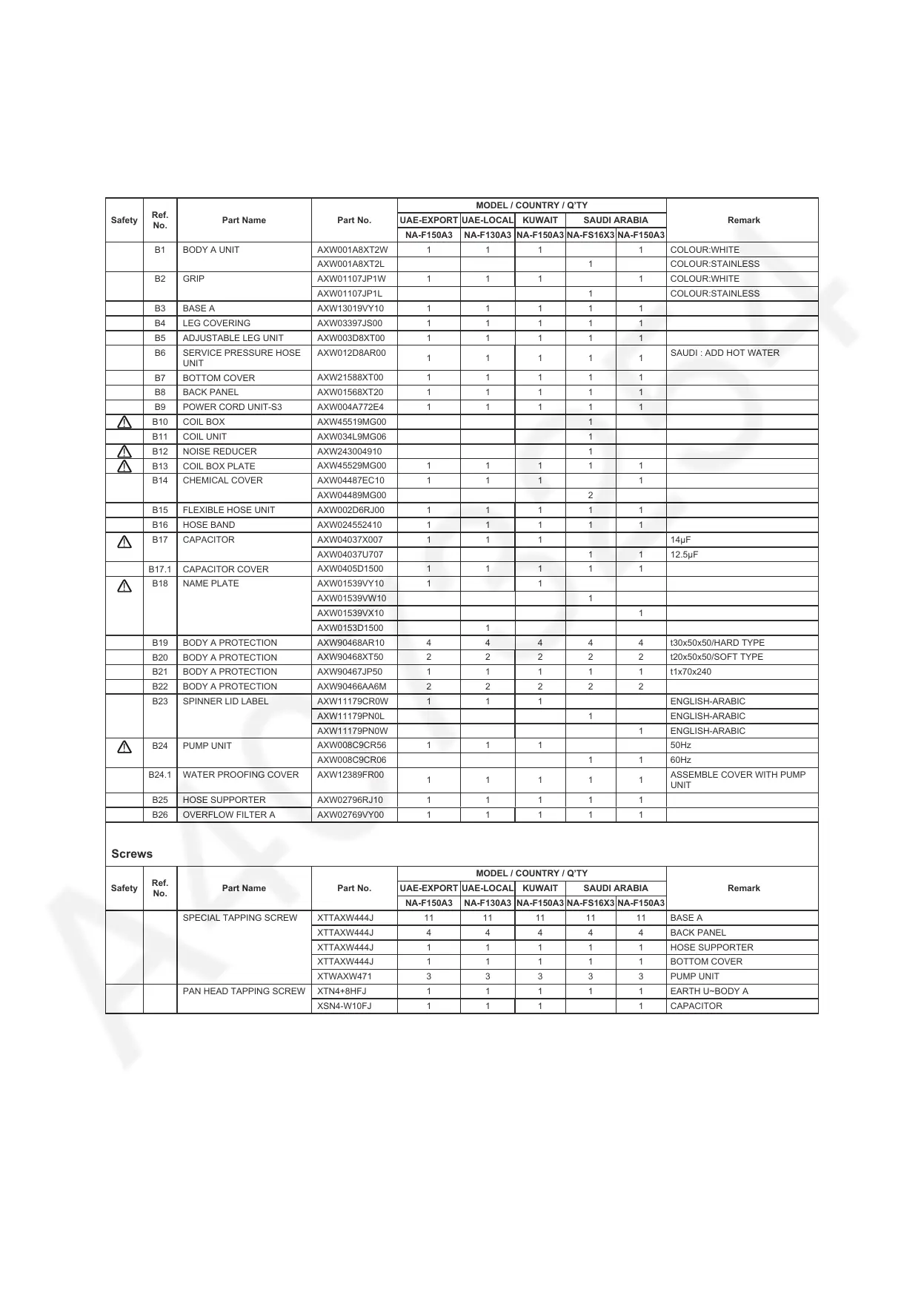 Part List : Part B of NA-FS16X3, F150A3, NA-F130A3