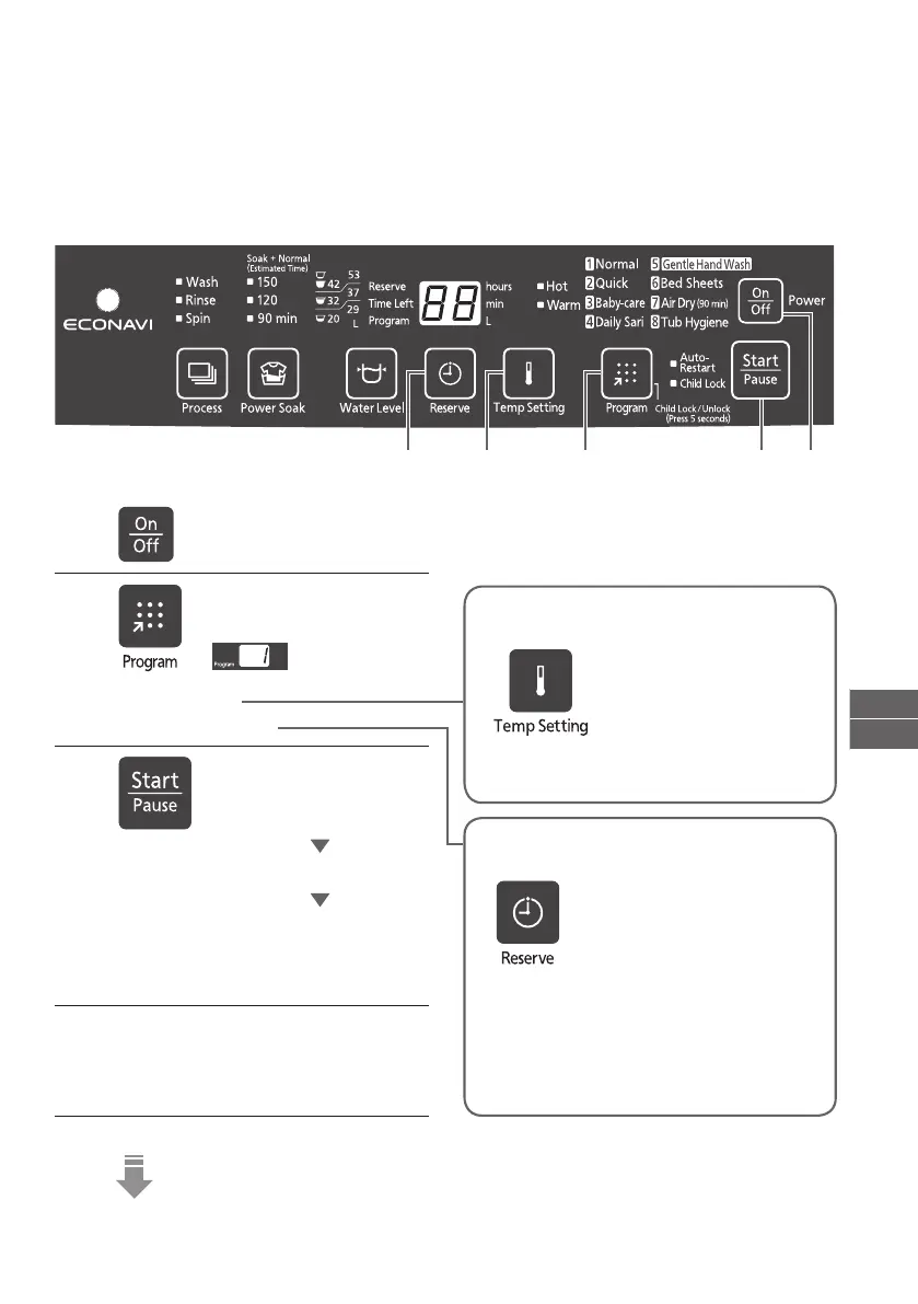 Press to select Hot/Warm for washing.