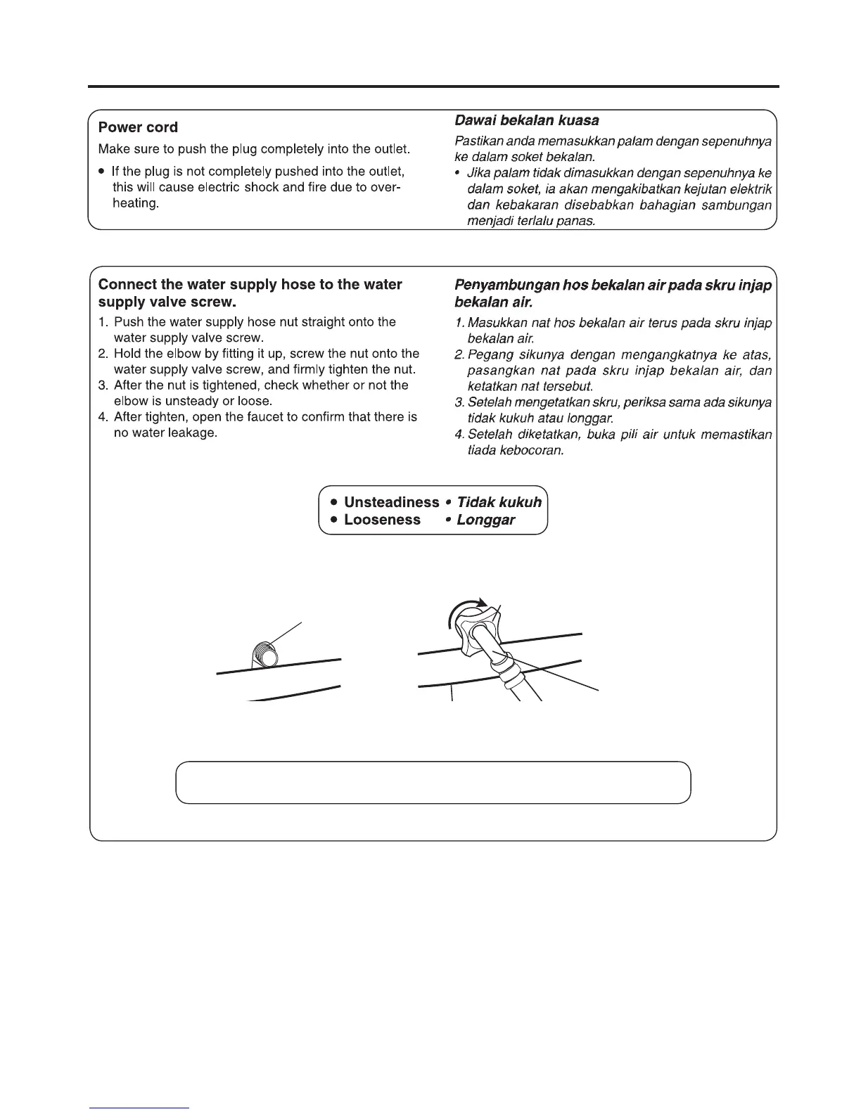 Ketatkan unit dengan tegap. Jika tidak, kebocoran air akan berlaku.
