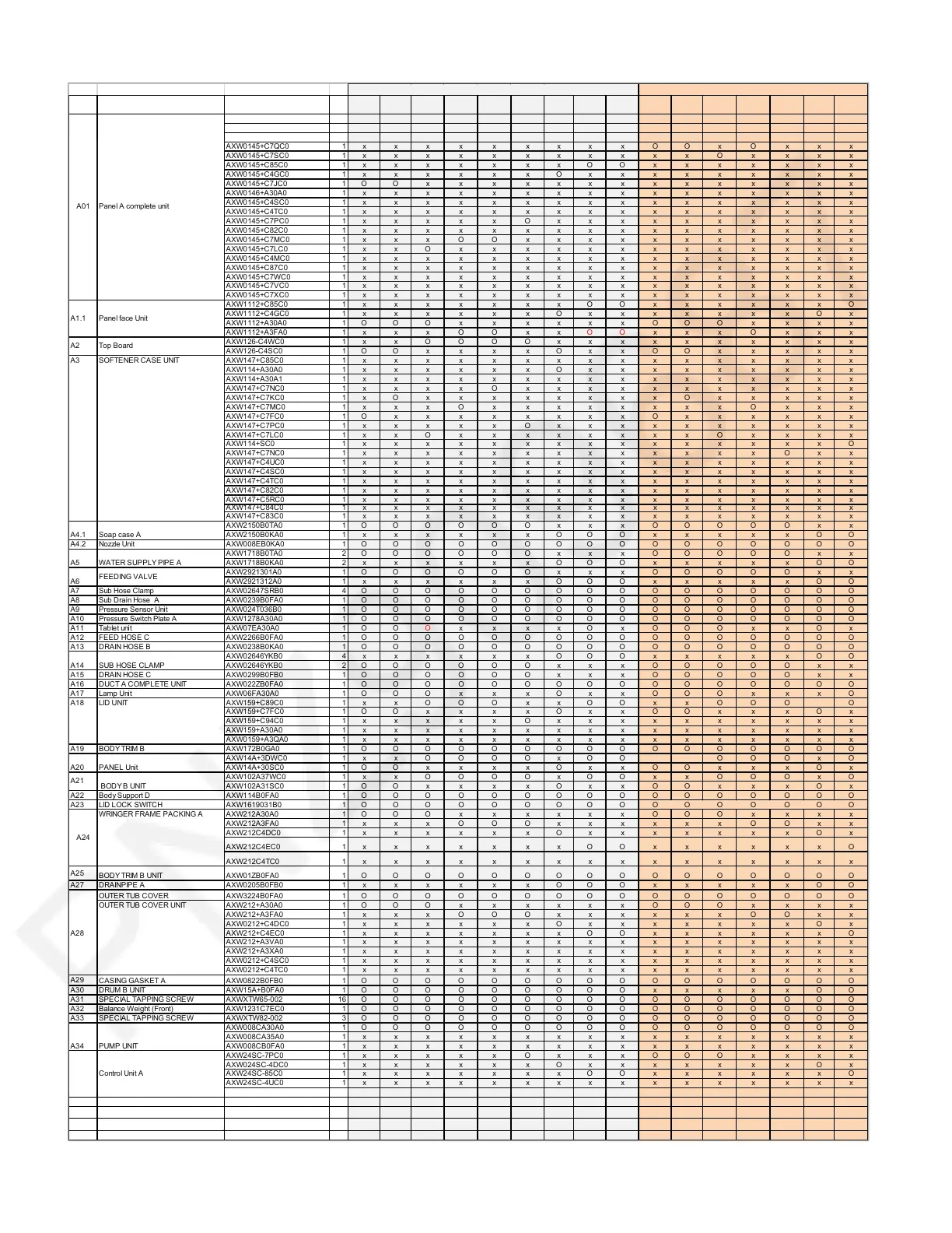 OUTER TUB COVER UNIT AXW212+A30A0 1 O O O x x x x x x O O O x x x x