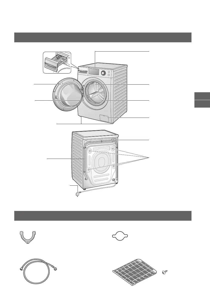 Water supply hose (P. 49, 50) Bottom cover (1) /Screw (1) (P. 47)