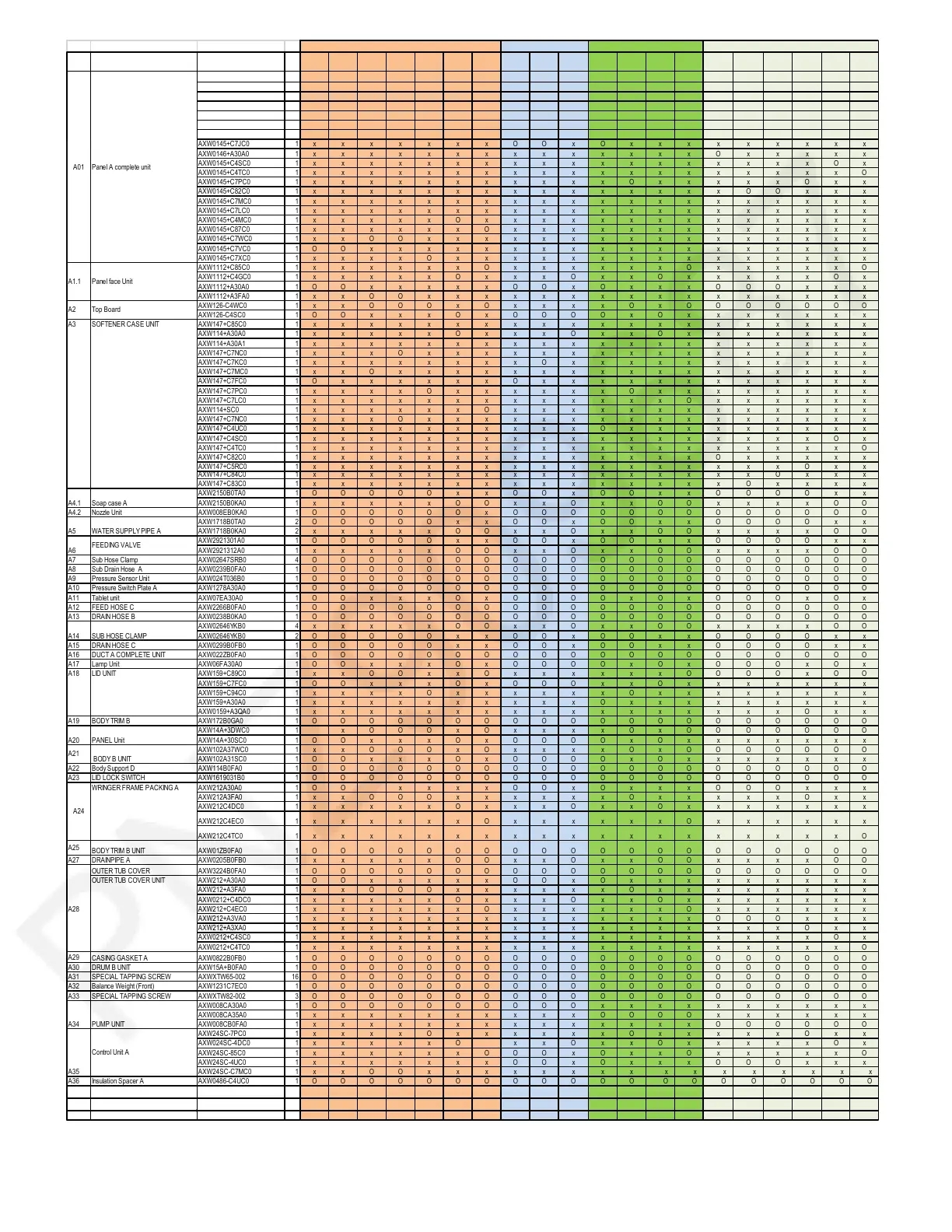 OUTER TUB COVER UNIT AXW212+A30A0 1 O O x x x x x O O x O x x x x x x x x x