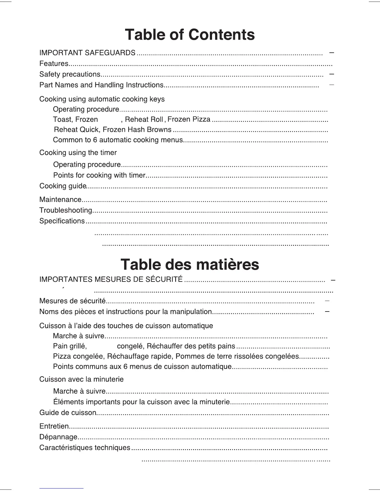 Panasonic NBG110P - Table of Contents
