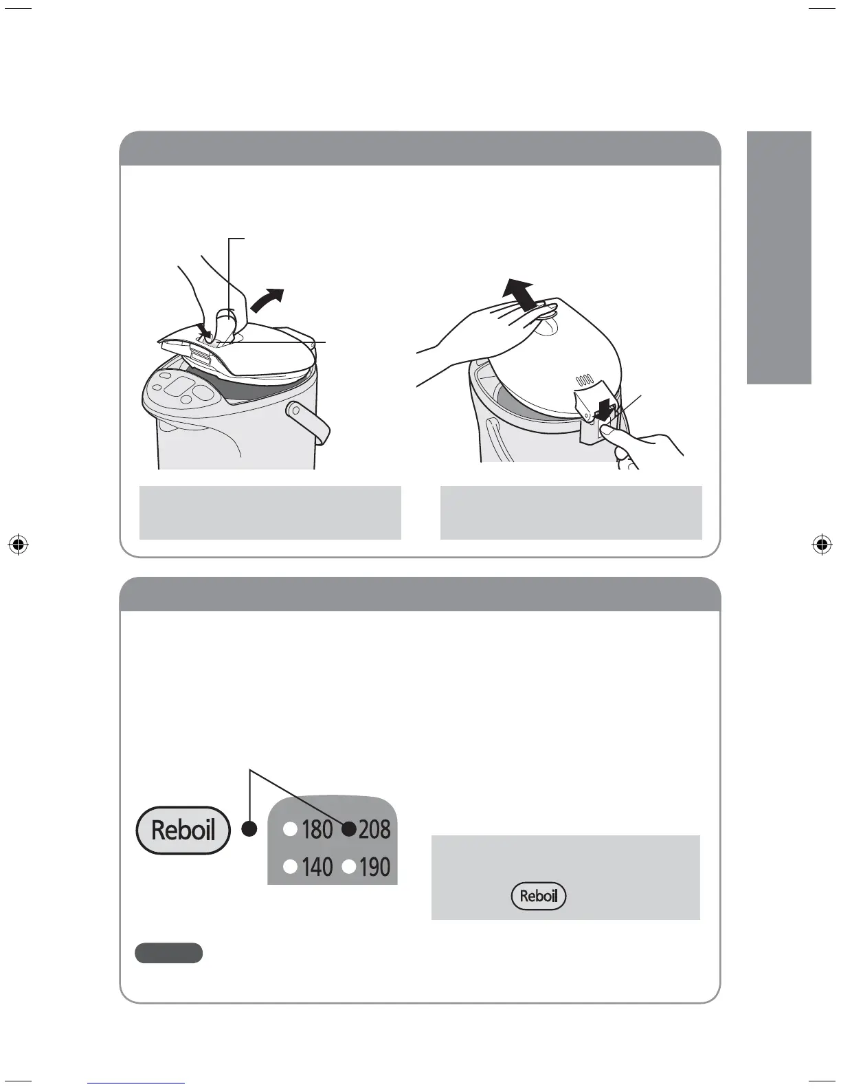 opening lever, and lift the lid.