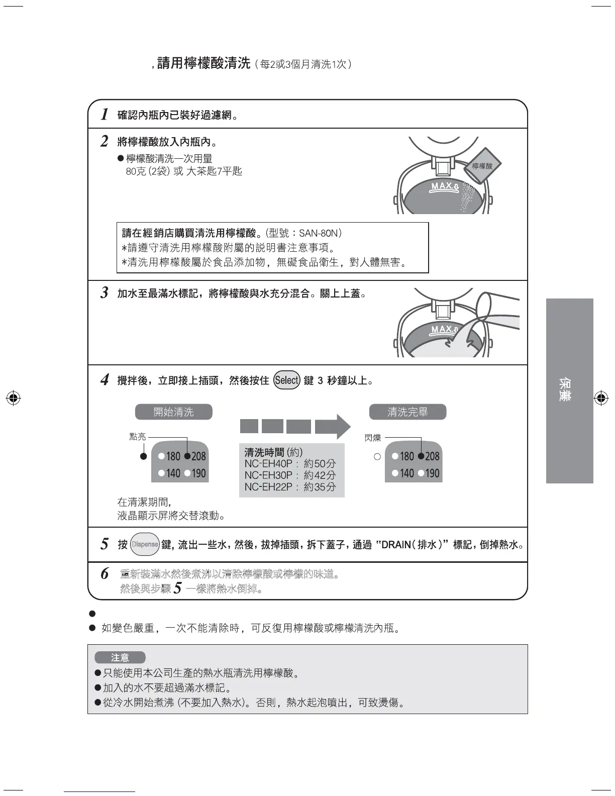 重新裝滿水然後煮沸以清除檸檬酸或檸檬的味道。