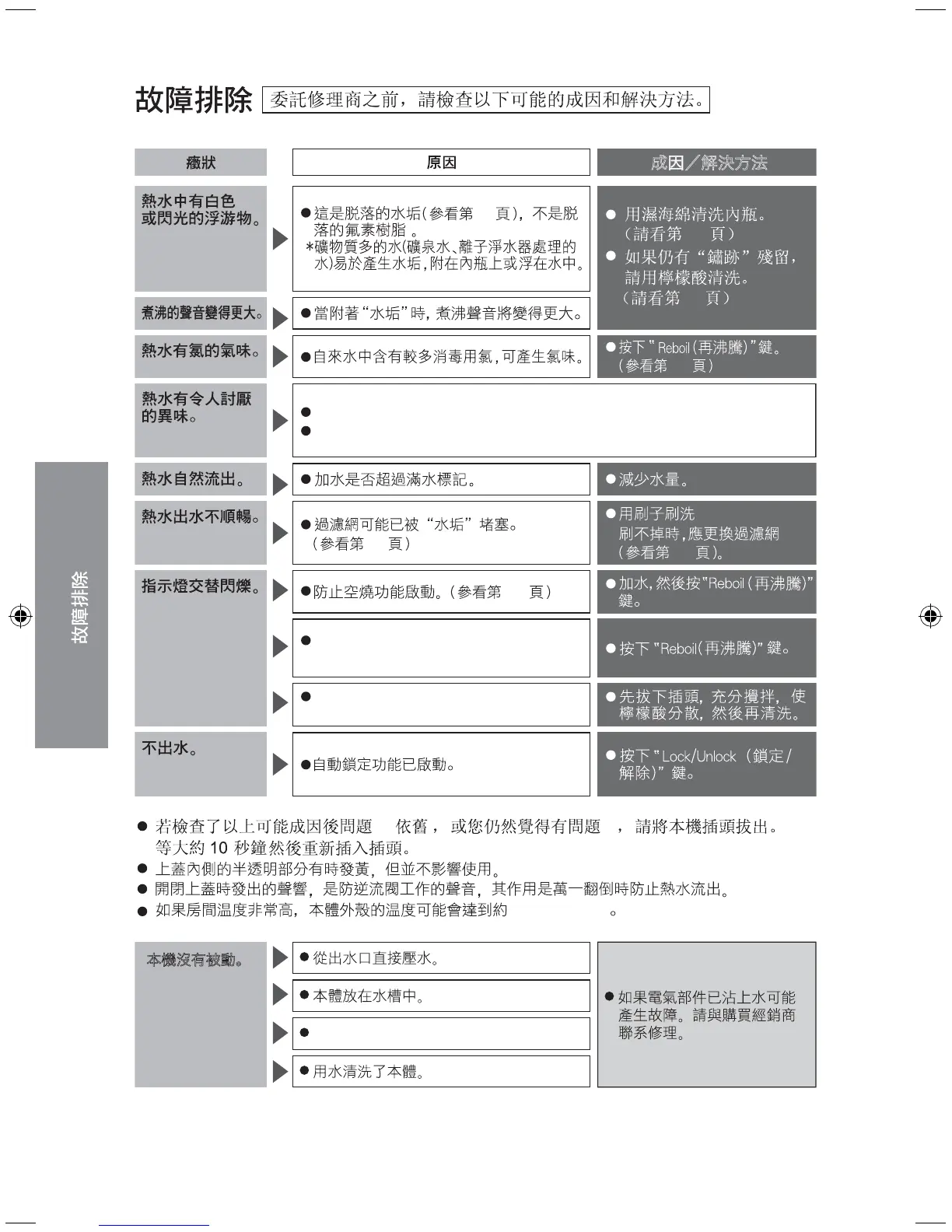 加入熱水或加水的方法可能會使指示燈