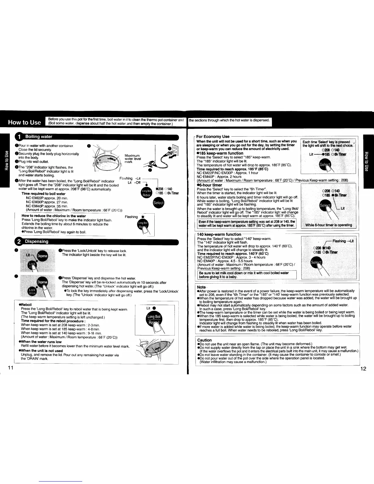 Panasonic NC-EM22P - How to Use; Boiling Water; Dispensing; Economy Use