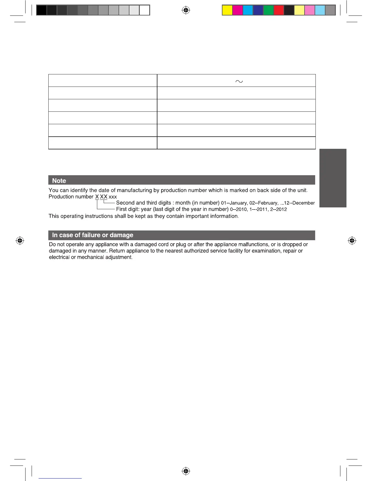 Panasonic NC-GF1 - Specifications; Technical Specifications Details; Handling Failures and Damage