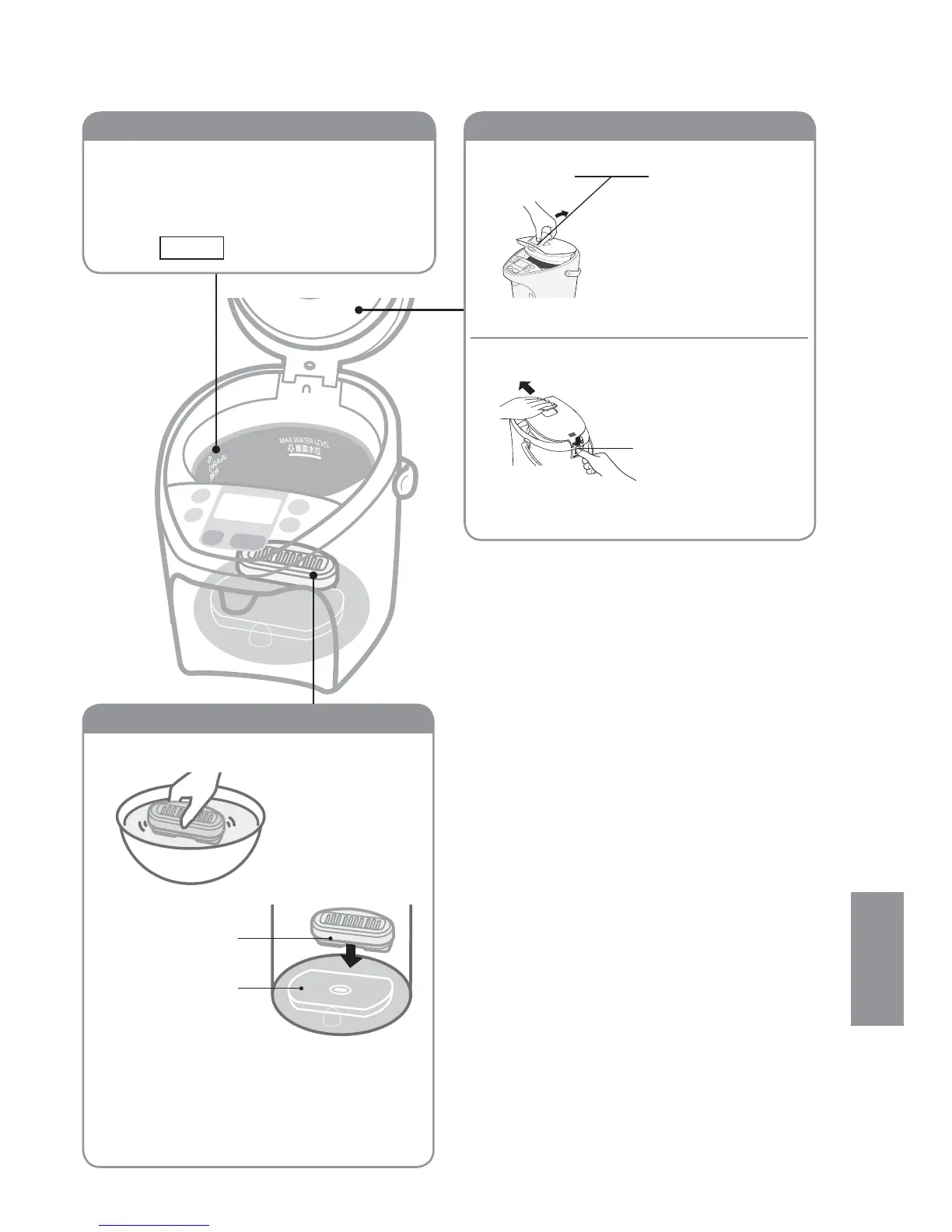 斜向拉起開蓋按鈕,同時按住上蓋柄。