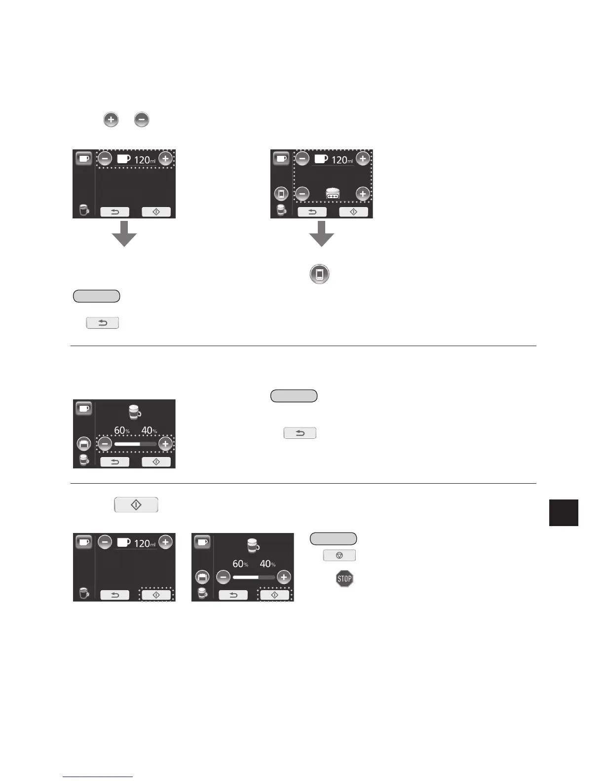 • When “Latte Macchiato” is selected, the cup filling quantity will be