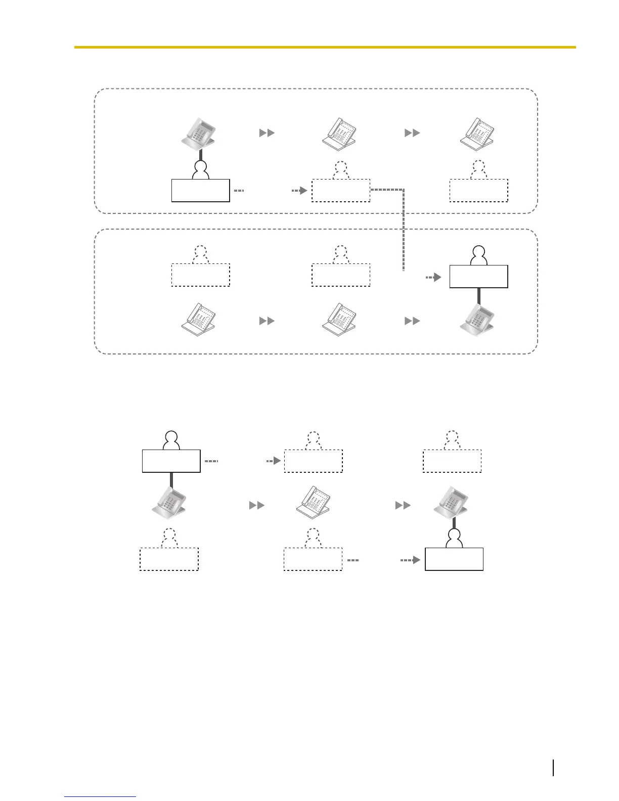 In this example, extension users A and B work in shifts and use the same extension in turn. User A sets the