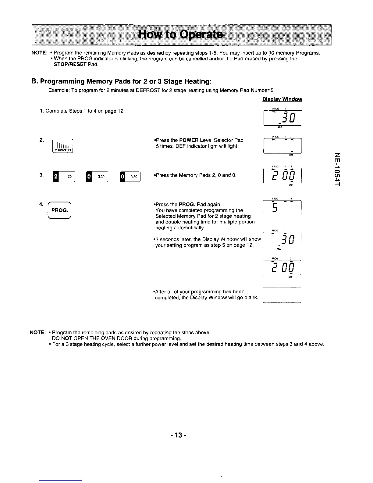 tor 2 minutes at DEFROST for 2 stage heaiing using Memory