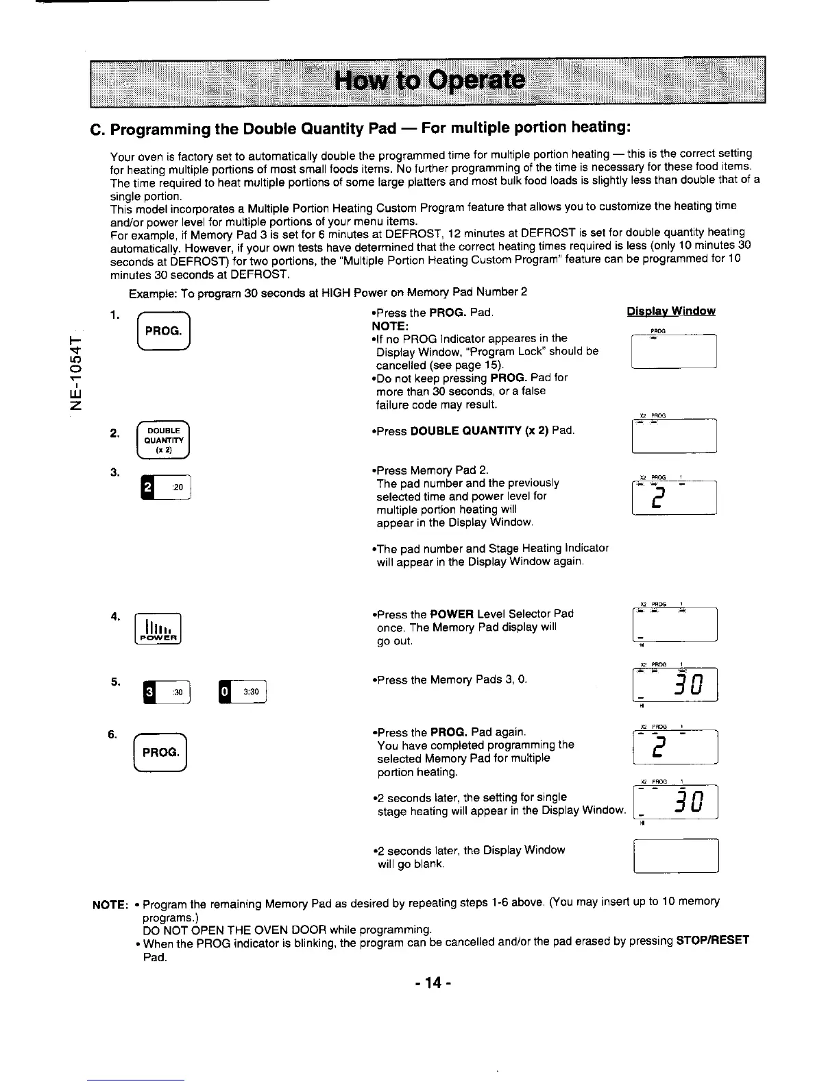 Panasonic NE-1024F - Programming the Double Quantity Pad for Multiple Portion Heating