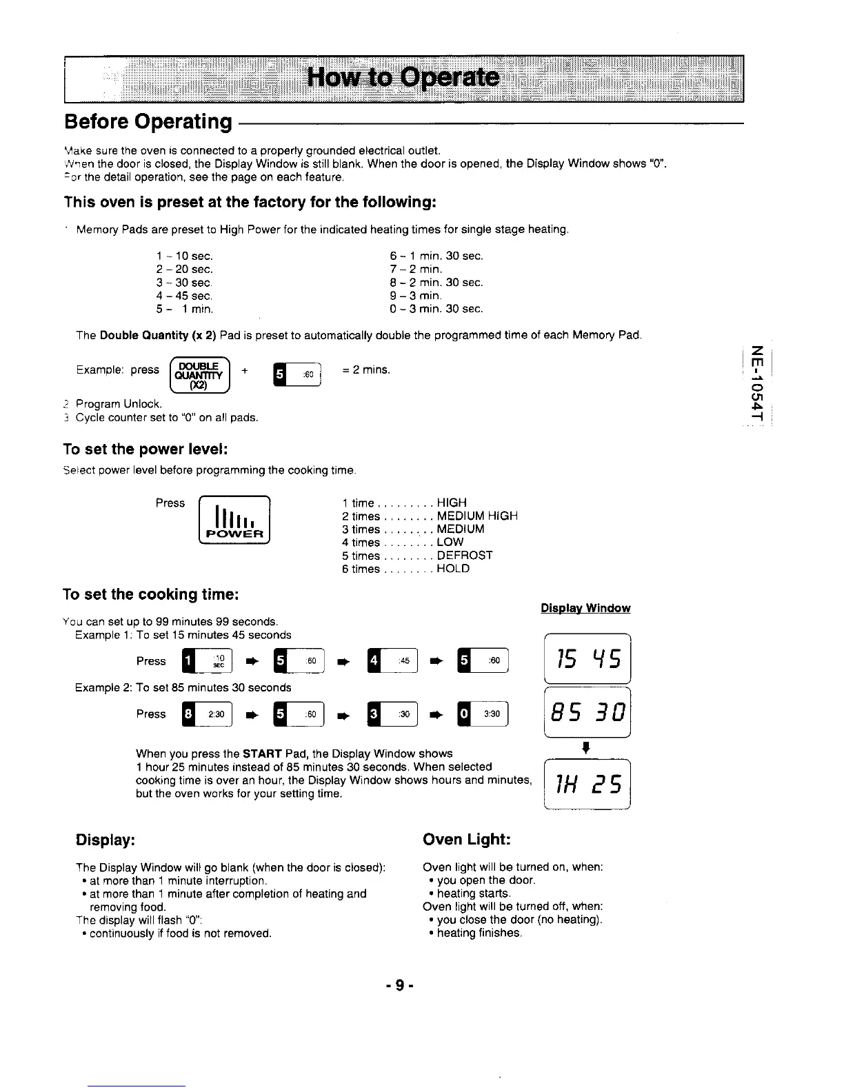 cooking time is over an hour, the Display Window shows