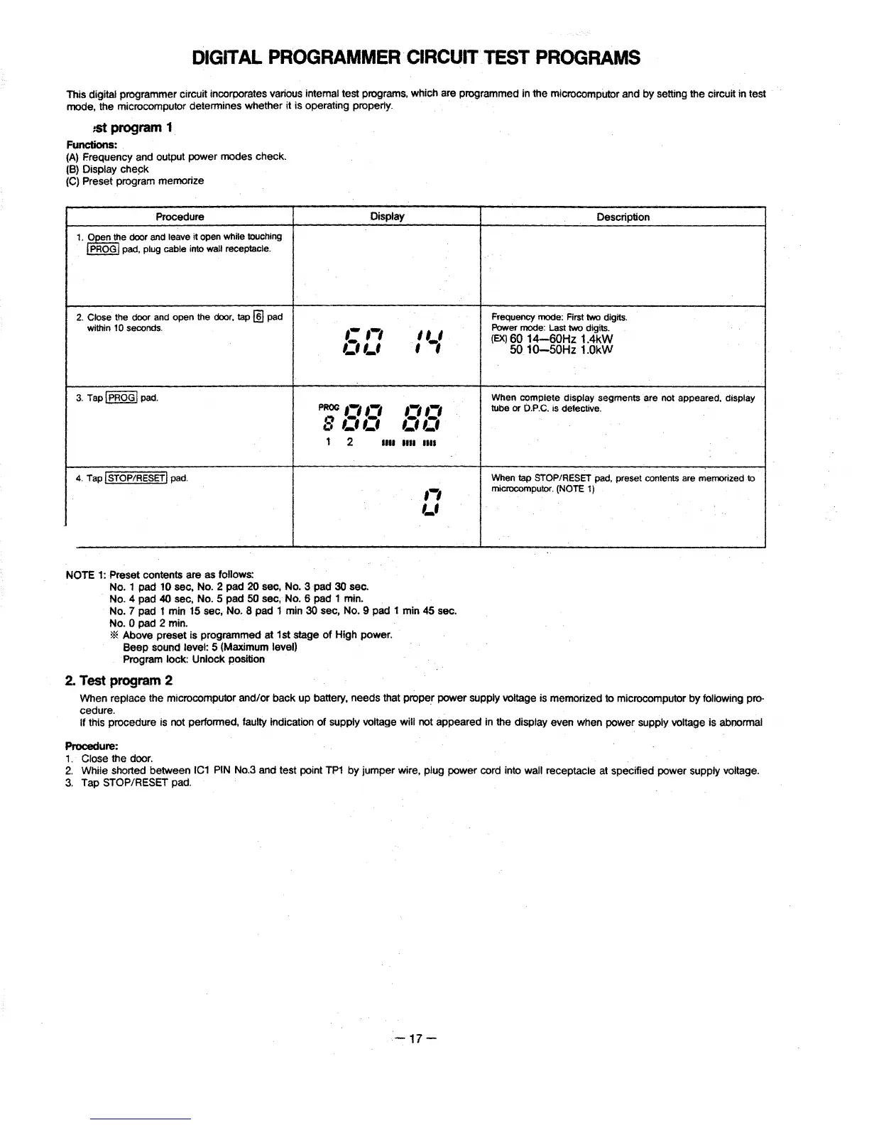 Panasonic NE-1457 - Digital Programmer Circuit Test Programs; Test Program 1 Functions; Test Program 2 Initialization