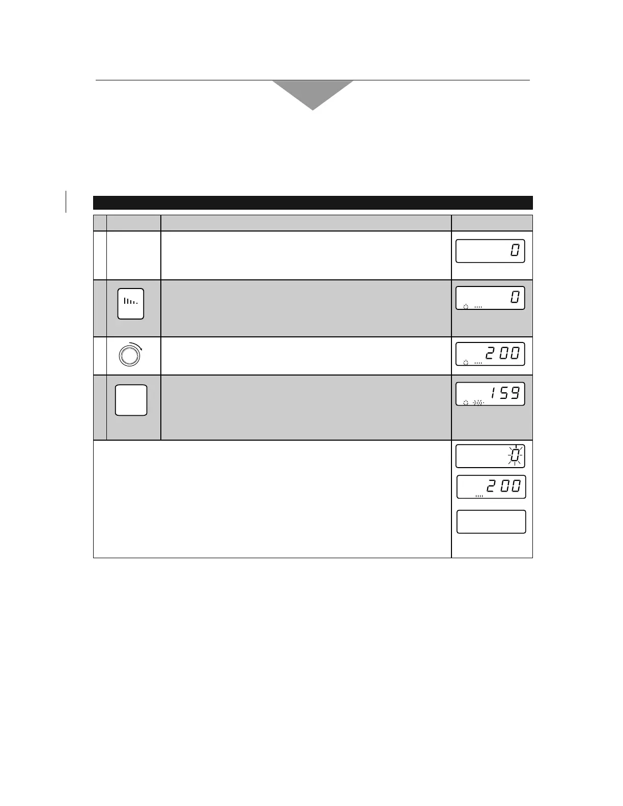 ☛ The oven lamp will turn on and “0” will appear.