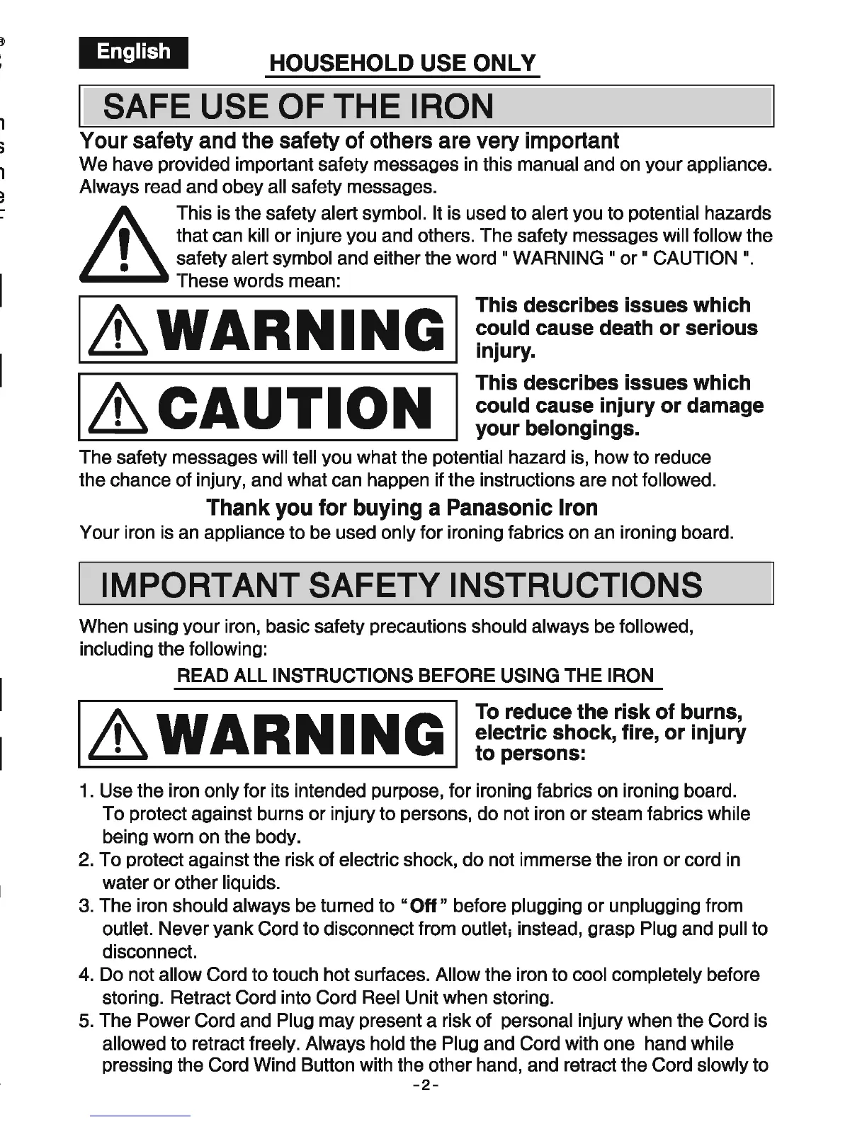 Panasonic NI-E300TR - Safety; Important Safety Instructions