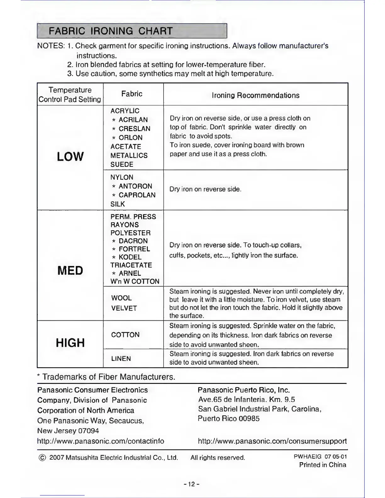 NOTES: 1 . Check garment for specific ironing instructions. Always follow manufacturer's