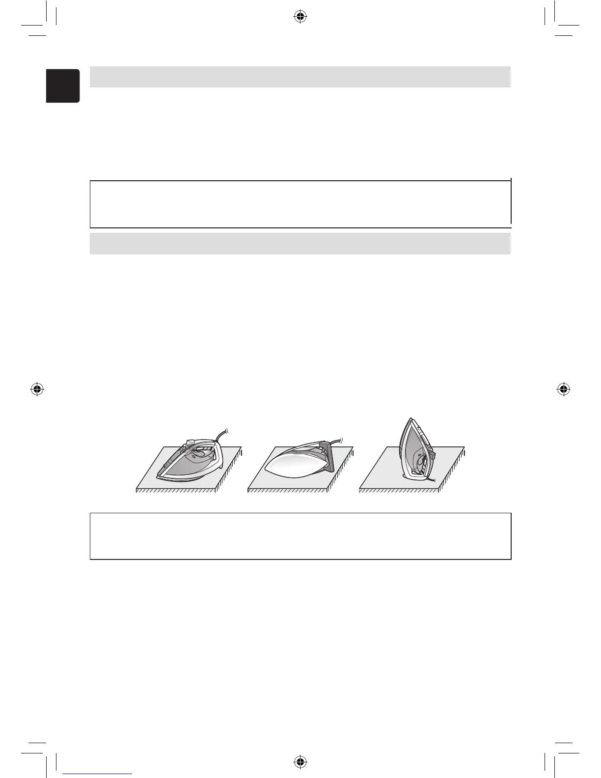 1. When the iron is left unmoved on its Soleplate facing down or on its side