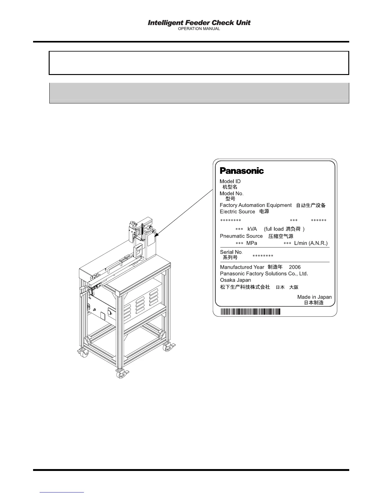 The serial plate indicating the product name (Model ID) and production number (Serial No.) of the machine