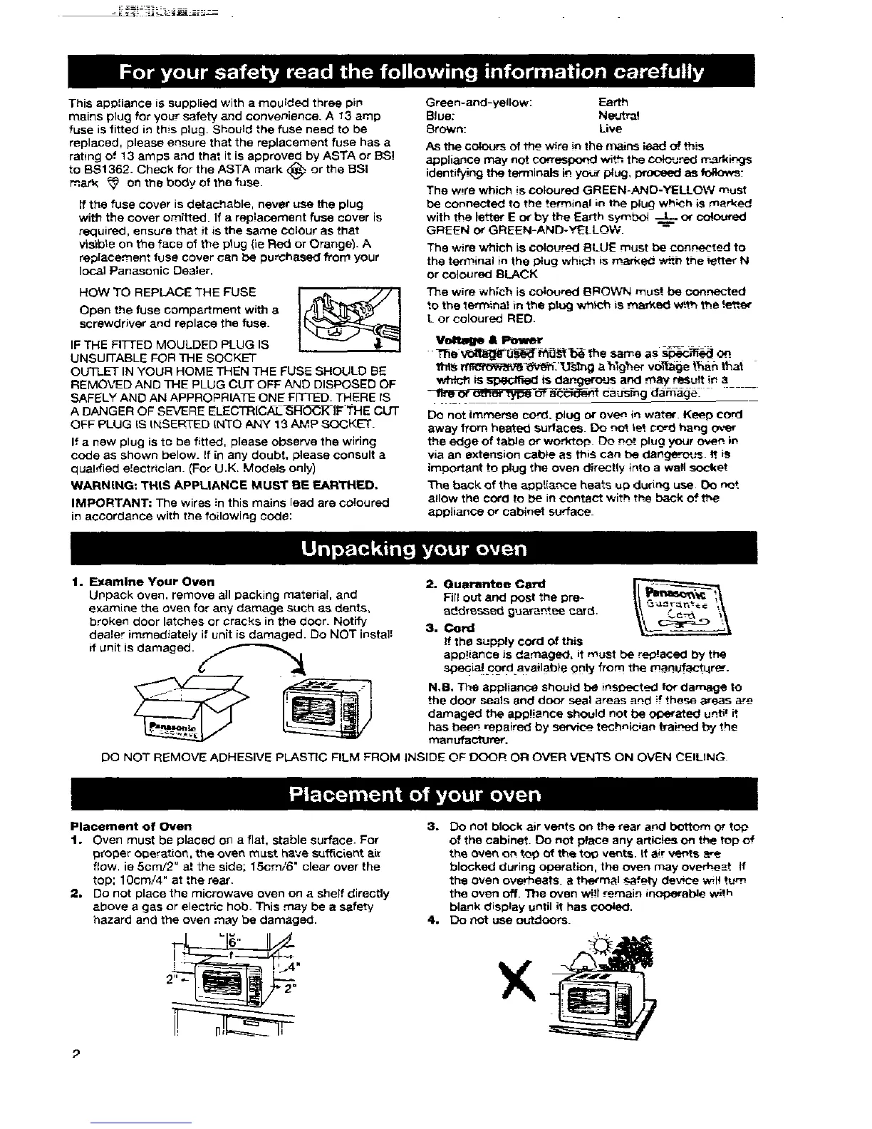 Panasonic NN 3454 - Electrical Safety and Oven Placement