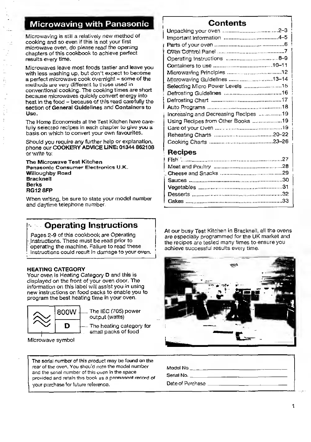 Panasonic NN-3456 - Introduction to Microwaving; Cookery Advice Line Contact; Operating Instructions; Heating Category Information
