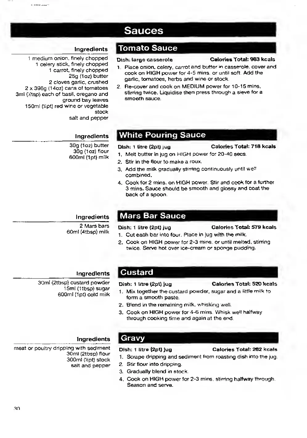 Panasonic NN-3496 - Sauces Recipes; Tomato, White Pouring, Mars Bar, Custard, and Gravy