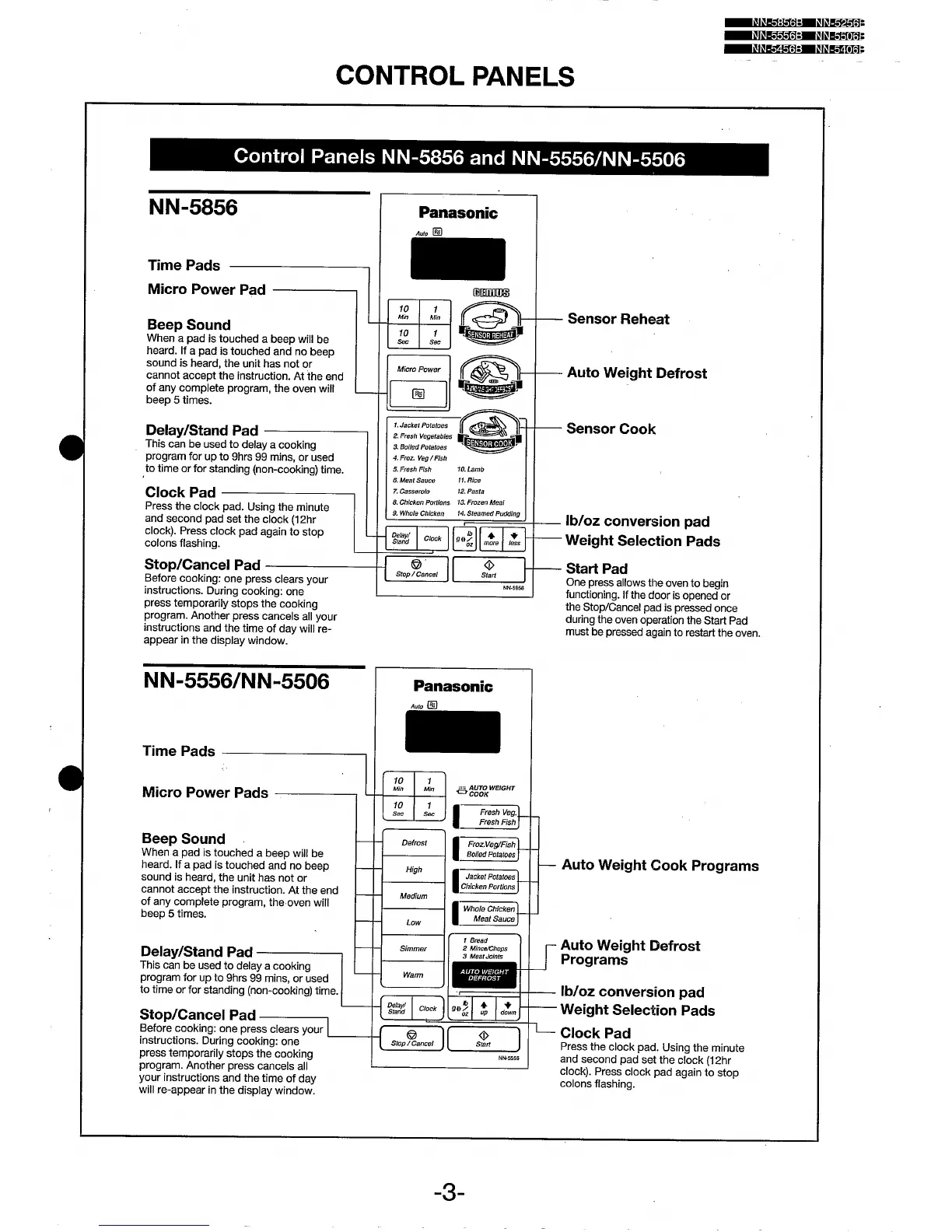 Panasonic NN-5256B - Microwave Oven Control Panels