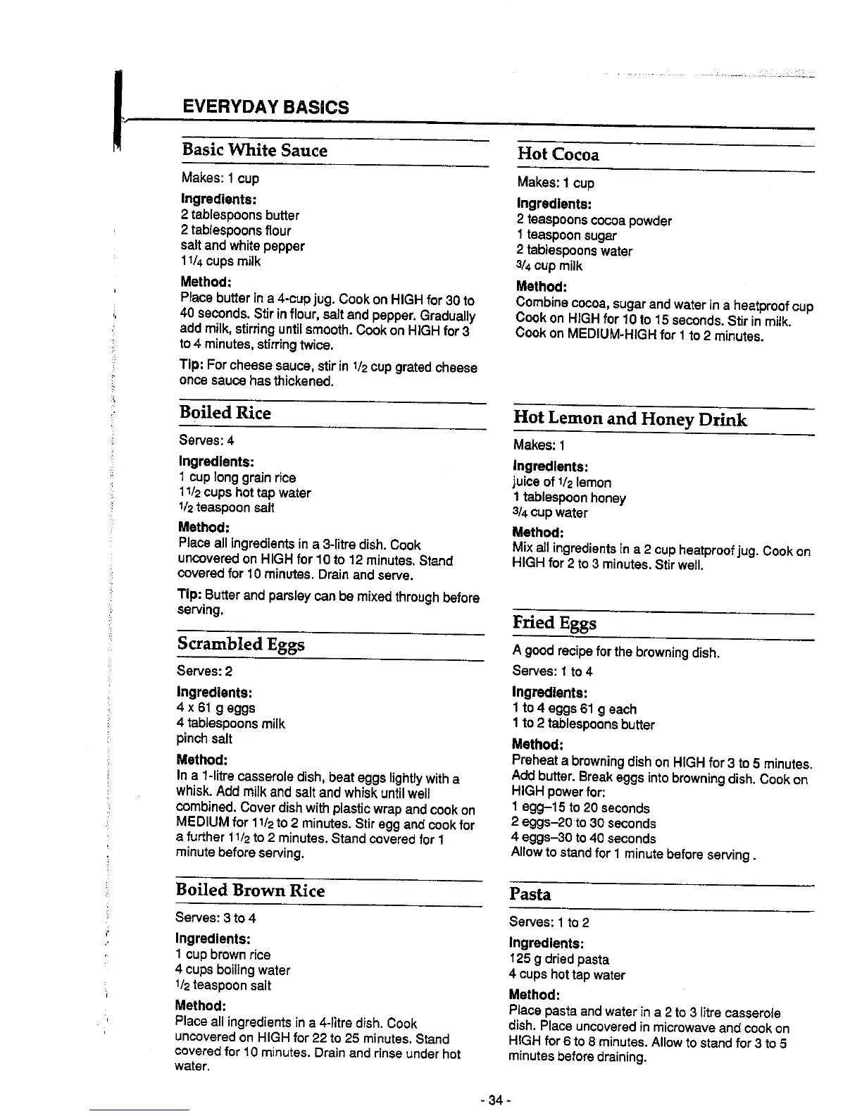 Panasonic NN-5752 - Basic White Sauce; Boiled Rice; Scrambled Eggs; Boiled Brown Rice