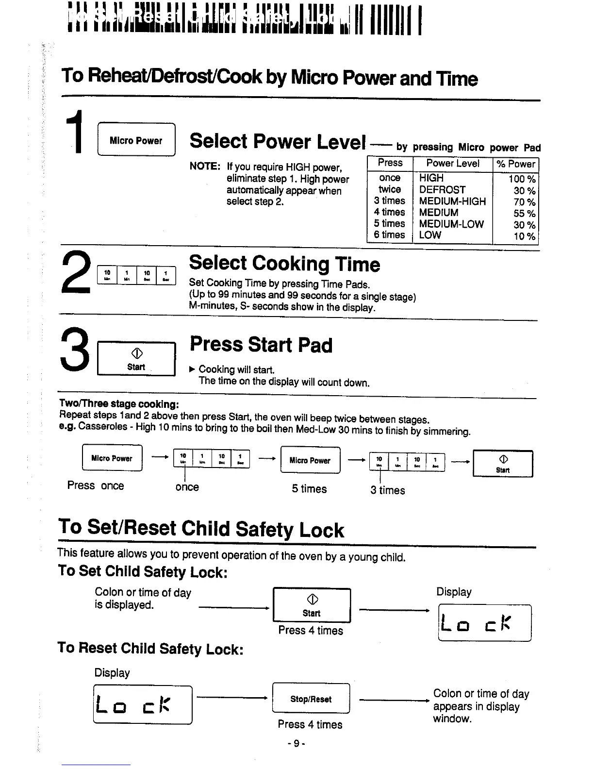 Panasonic NN-5752 - To Reheat;Defrost;Cook by Micro Power and Time; To Set;Reset Child Safety Lock