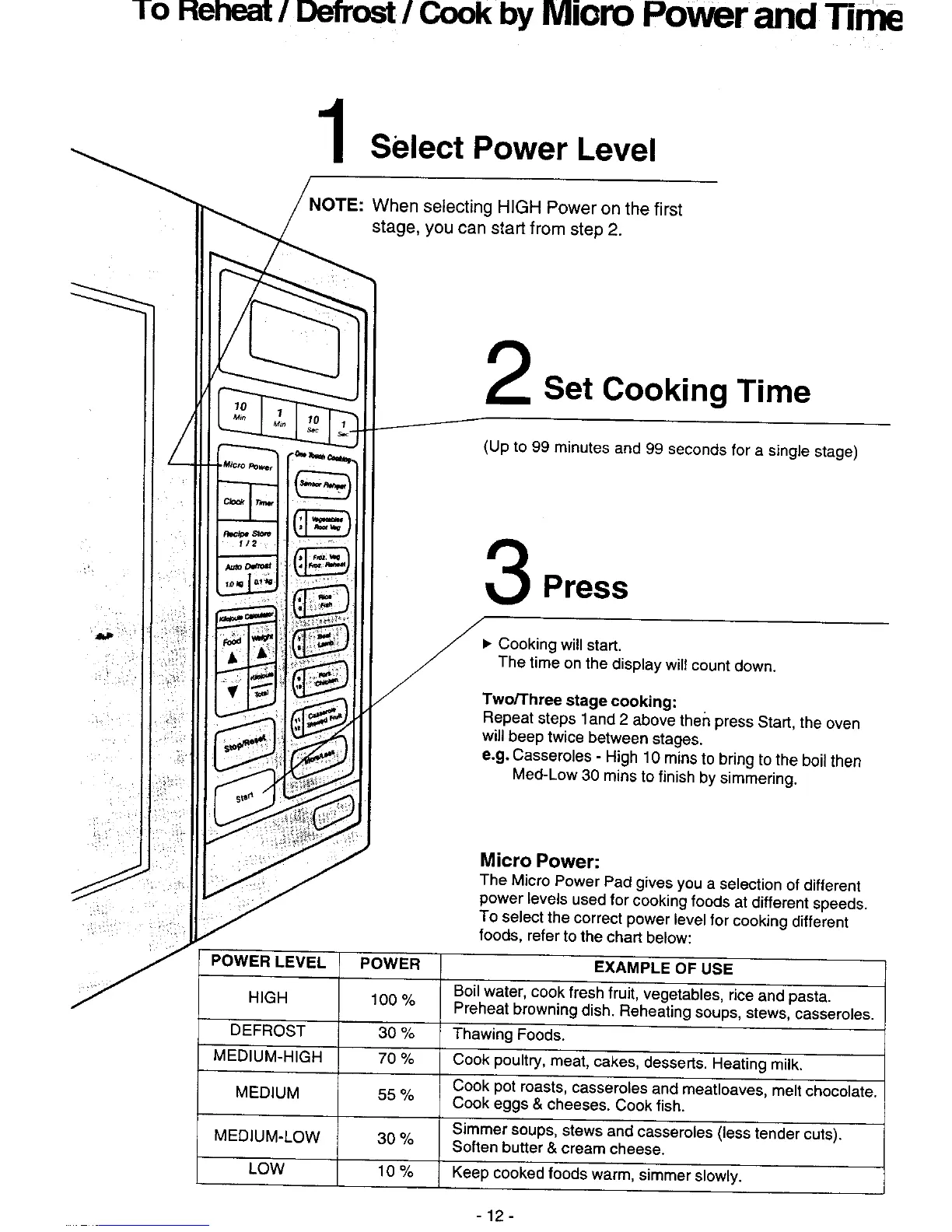Panasonic NN-6803 - Reheat, Defrost, and Cook by Power and Time; Micro Power Level Settings