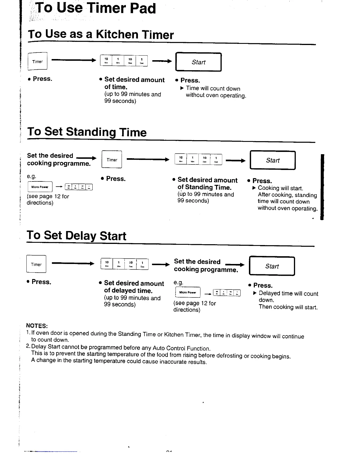 Panasonic NN-6803 - Using the Timer Pad Functions; Kitchen Timer Operation; Setting Standing and Delay Start Times