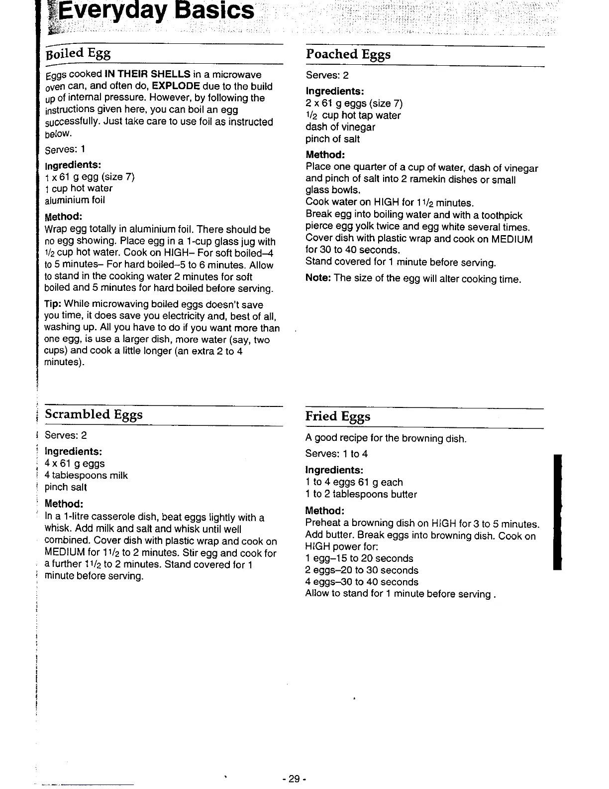 Panasonic NN-6803 - Everyday Basics: Egg Dishes; Boiled, Poached, Scrambled, and Fried Eggs